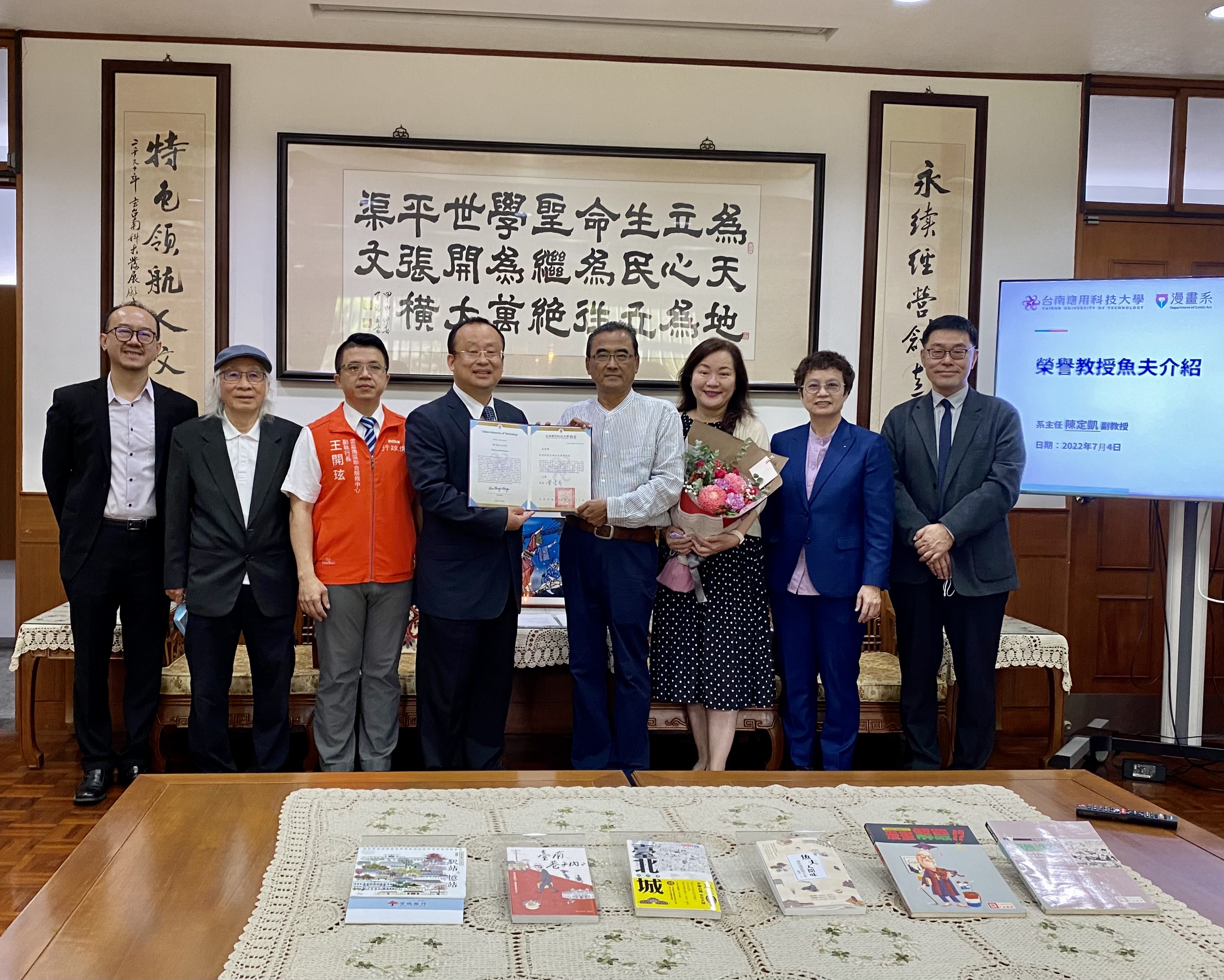 台南市副市長趙卿惠表示,魚夫先生是臺灣自1980年代以來最具代表性的新聞漫畫家,從首開「元首漫畫化」先河的《蔣經國開路》到描繪名流幕後的《魚夫漫話SHOW》,再到後期紀錄人文美食的《魚夫人間味》與《臺南巷子內》,在其筆下看見的不只是漫畫,更是對社會、土地最深切的關懷。趙副市長誠摯恭喜南應大漫畫系聘得魚夫先生為榮譽教授,更為國內漫畫人才育成帶來嶄新視野!