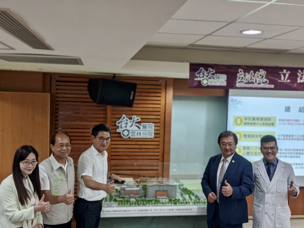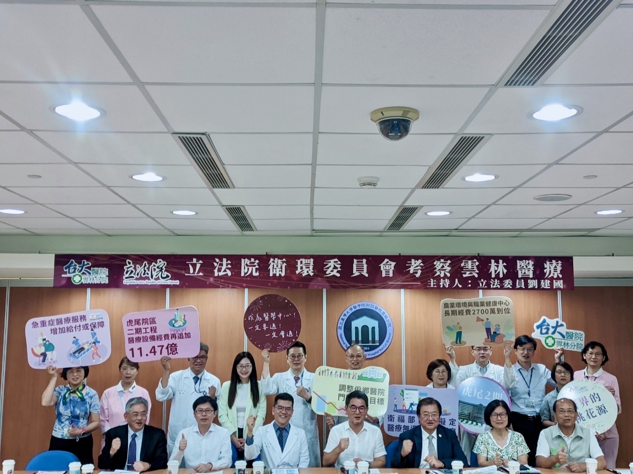 立法院社會福利及衛生環境委員會在立法委員劉建國安排下於4日至雲林考察,並由邱泰源部長帶領衛生福利部團隊、農業部、教育部等官員一同考察國家級高齡醫學暨健康福祉研究中心、台大雲林分院虎尾院區二期擴建、台大農業環境及職業健康中心,行政院雲嘉南區聯合服務中心陳怡帆副執行長也到場關心,期盼雲林未來在醫療、長照等建設都可以更加精進。