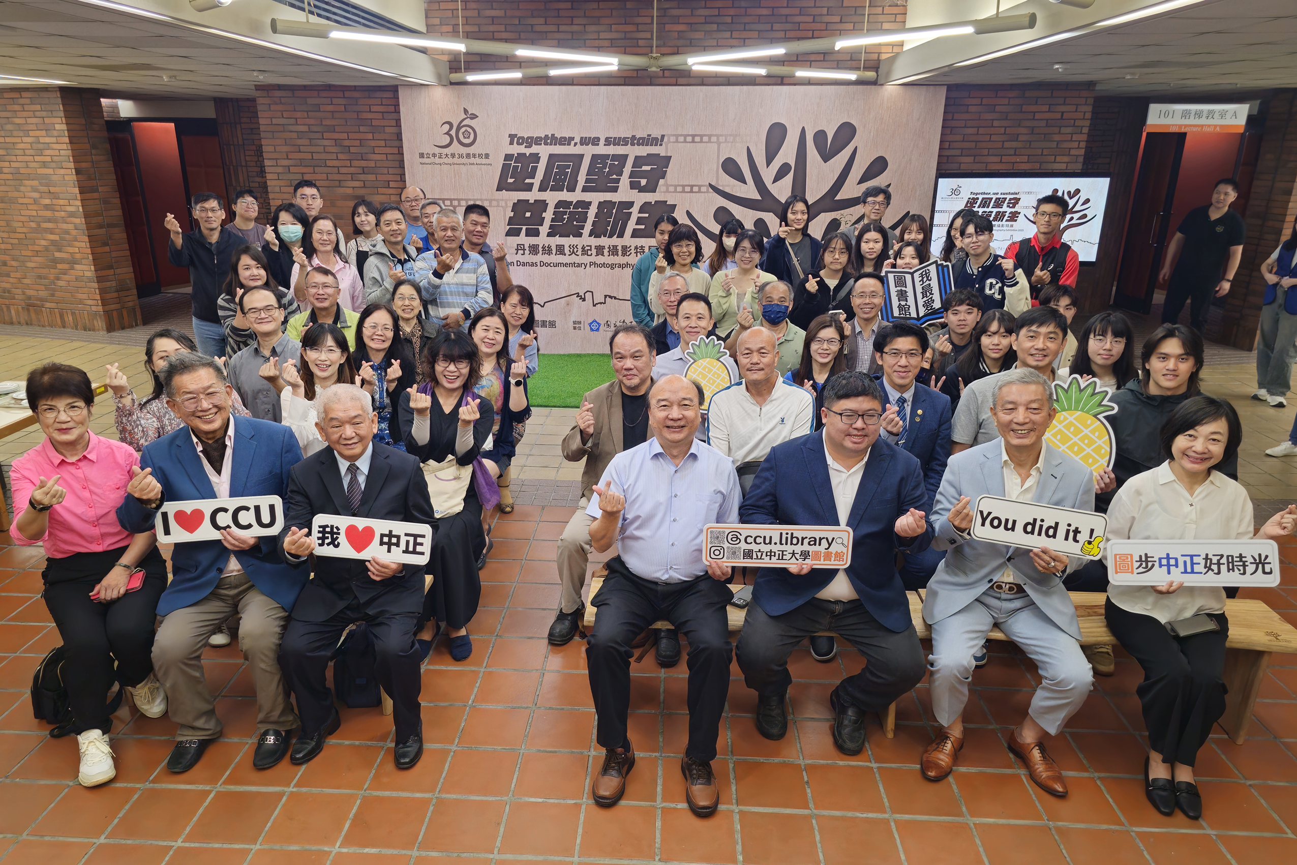 國立中正大學圖書館於25日舉行「丹娜絲風災紀實攝影特展」開幕典禮暨紀錄片首映茶會,透過影像與敘事完整呈現今年7月丹娜絲颱風對校園造成的衝擊,以及校方在各界支援下的災後復原成果。行政院雲嘉南區聯合服務中心副執行長李碧菁亦受邀出席,共同見證中正大學的重建歷程。