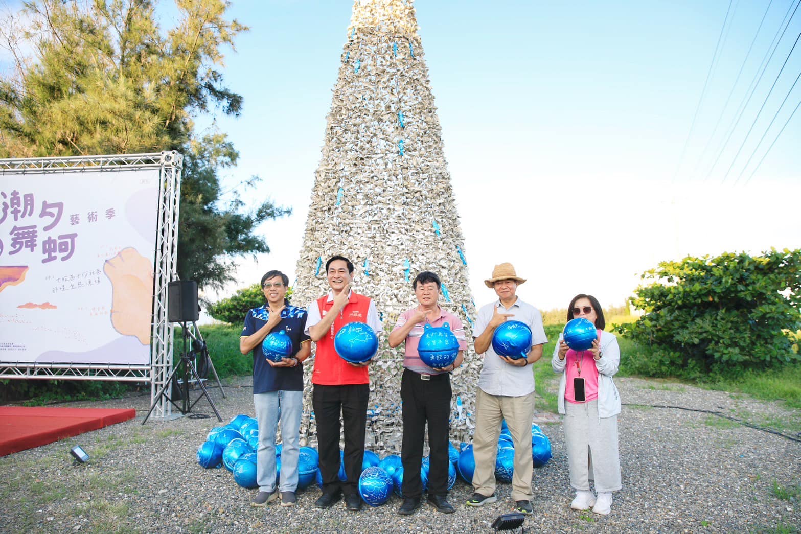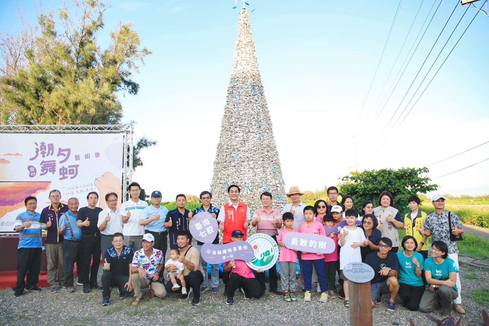 行政院雲嘉南區聯合服務中心執行長劉米山於9日赴臺南七股羽堤生態漁場參加「潮夕舞蚵藝術季」、「勇敢的樹」揭幕活動。