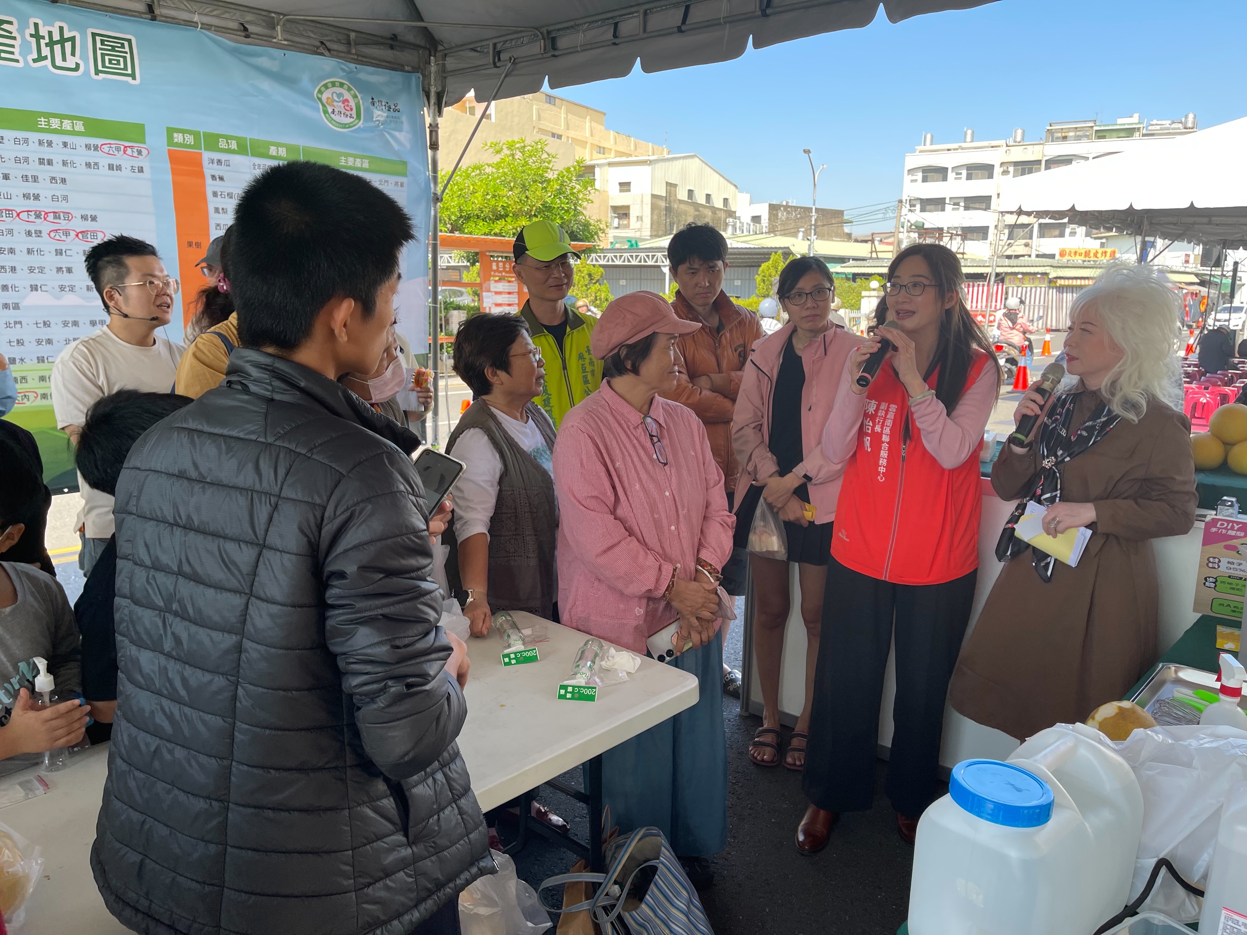 由行政院雲嘉南區聯合服務中心指導,台南市麻豆區公所主辦,『2024年「麻豆愛樂讀」產業文化推廣行銷』活動於今(7)日在麻豆圖書館前廣場舉行,活動以「推廣農業與食農教育」為核心,將麻豆的在地農業特色與閱讀推廣相結合;行政院雲嘉南區聯合服務中心副執行長陳怡帆和參與民眾一起體驗製作「柚子純香洗劑DIY」,一同感受農業的魅力與勞作的價值。