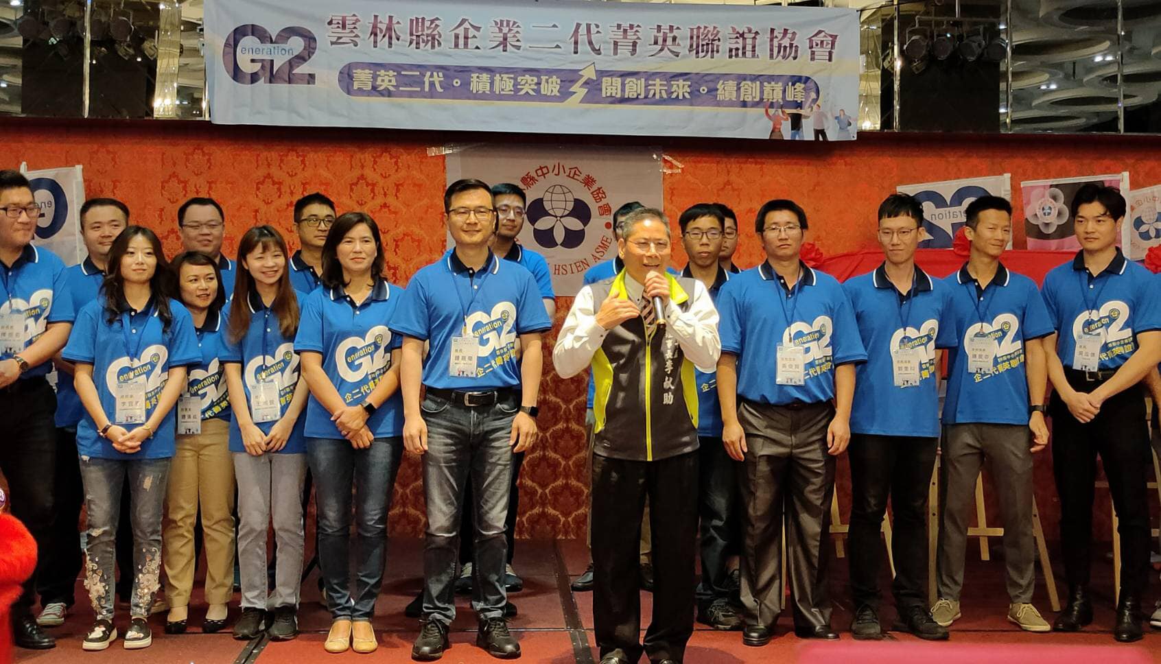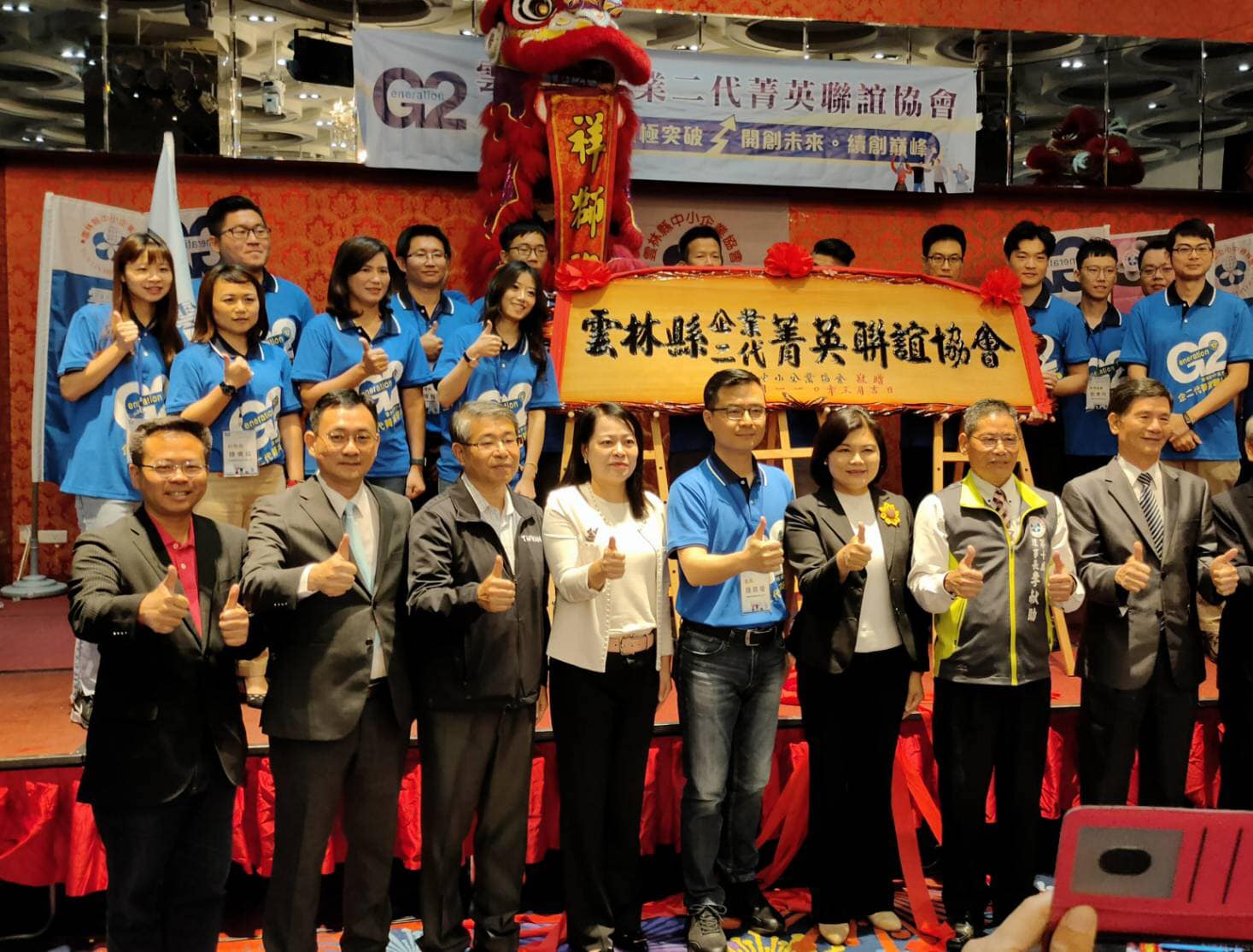行政院雲嘉南區聯合服務中心執行長許根尉於今(14)日應邀出席「雲林縣企業二代菁英聯誼協會」成立大會,並與立法委員蘇治芬服務處邱峯通主任、雲林縣議員蔡岳儒、雲林縣中小企業協會理事長李獻助及雲林縣企業二代菁英聯誼協會理事長鍾嘉毫等貴賓一起為成立大會揭牌。