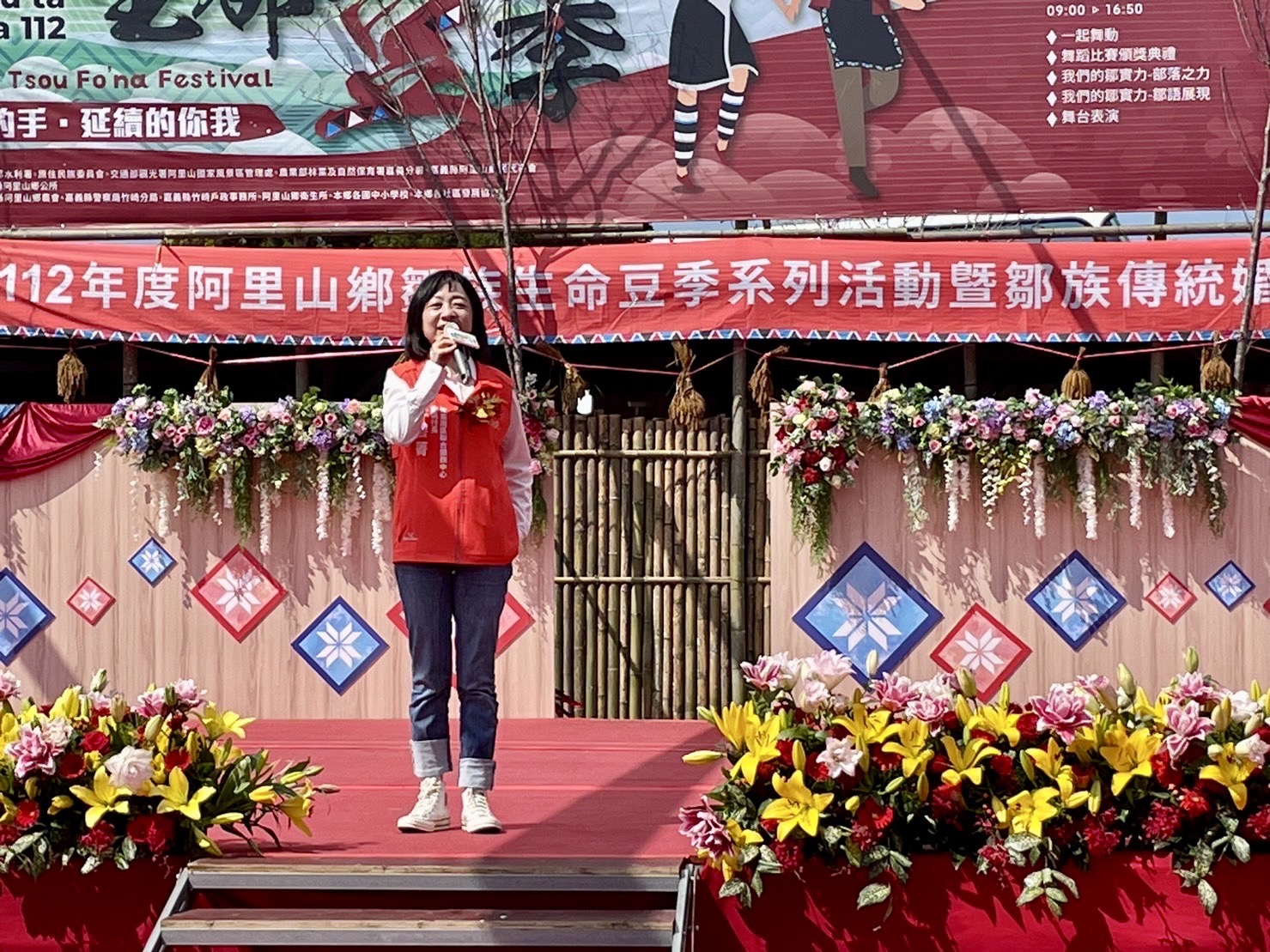 行政院雲嘉南區聯合服務中心副執行長李碧菁於今(28)日受邀出席由嘉義縣阿里山鄉公所在阿里山鄉樂野服務區舉辦為期三天的「阿里山鄉一年一度生命豆季系列活動,結合鄒族文化傳統結婚儀式」,活動第二天(28日)為該系列活動之壓軸「生命豆的傳承」,此次17對登記結婚的本鄉新人,於上午舉行隆重的結婚儀式,也是活動的焦點,儀式以歡樂歌舞後點燃生命之火,搭配長老的祈福、成年禮及同心酒的加持,在長老的加持下,完成隆重的結婚儀式;下午將進行民眾體驗婚禮及部落文健站的演出,讓活動延續上午亮點持續傳承。