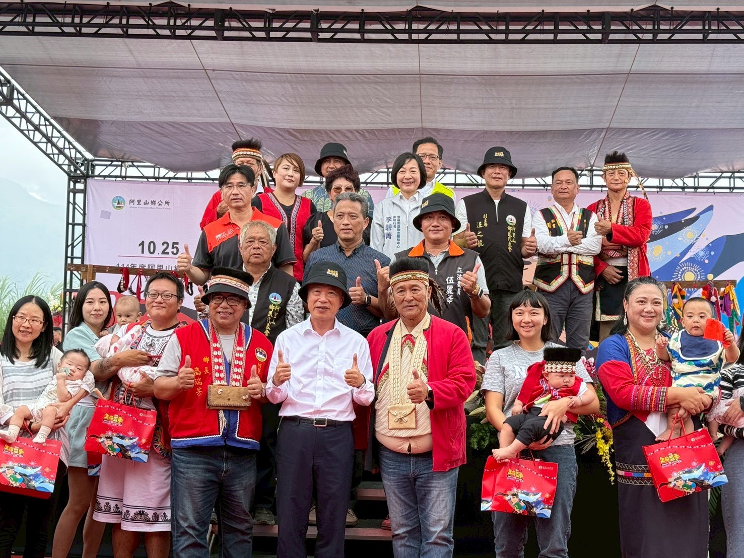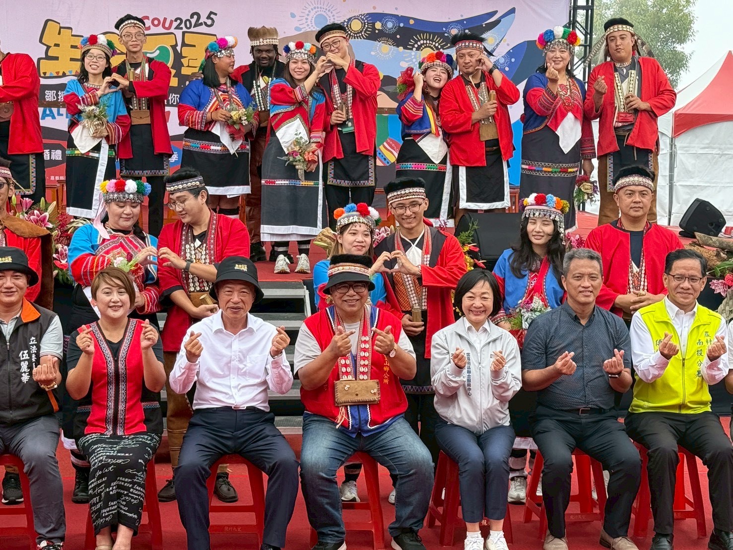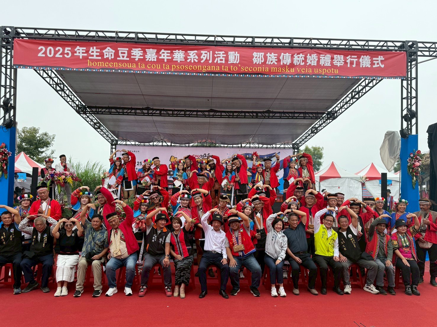 嘉義縣阿里山鄉114年「鄒族生命豆季」於25日登場,活動結合部落人文、觀光與產業資源,展現鄒族深厚的文化底蘊與生命精神。行政院雲嘉南區聯合服務中心副執行長李碧菁也出席活動,與現場貴賓共同見證新人接受長老祈福、交換信物與共飲同心酒的傳統婚禮儀式,場面溫馨感人。