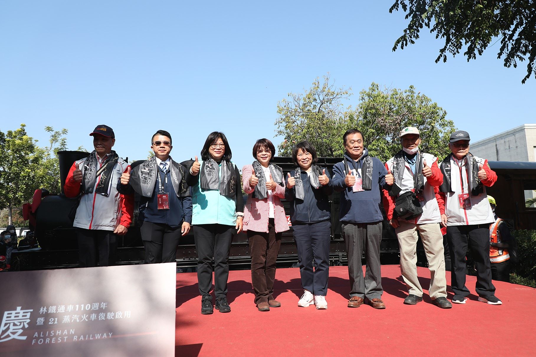 林務局阿里山林業鐵路及文化資產管理處於24日辦理阿里山鐵路通車110週年慶祝活動,「Shay21蒸機」同時復駛啟用。由行政院雲嘉南區聯合服務中心副執行長王開玹、阿里山林業鐵路及文化資產管理處長黃妙修、嘉義市長黃敏惠、立委翁重鈞、立委王美惠、鄒族長老高德生、頭目汪啟德以及在地文史工作與鐵道保存團隊和關心林鐵的各界代表齊聚,圍繞著Shay21蒸機共襄盛舉,共享《囍慶》。