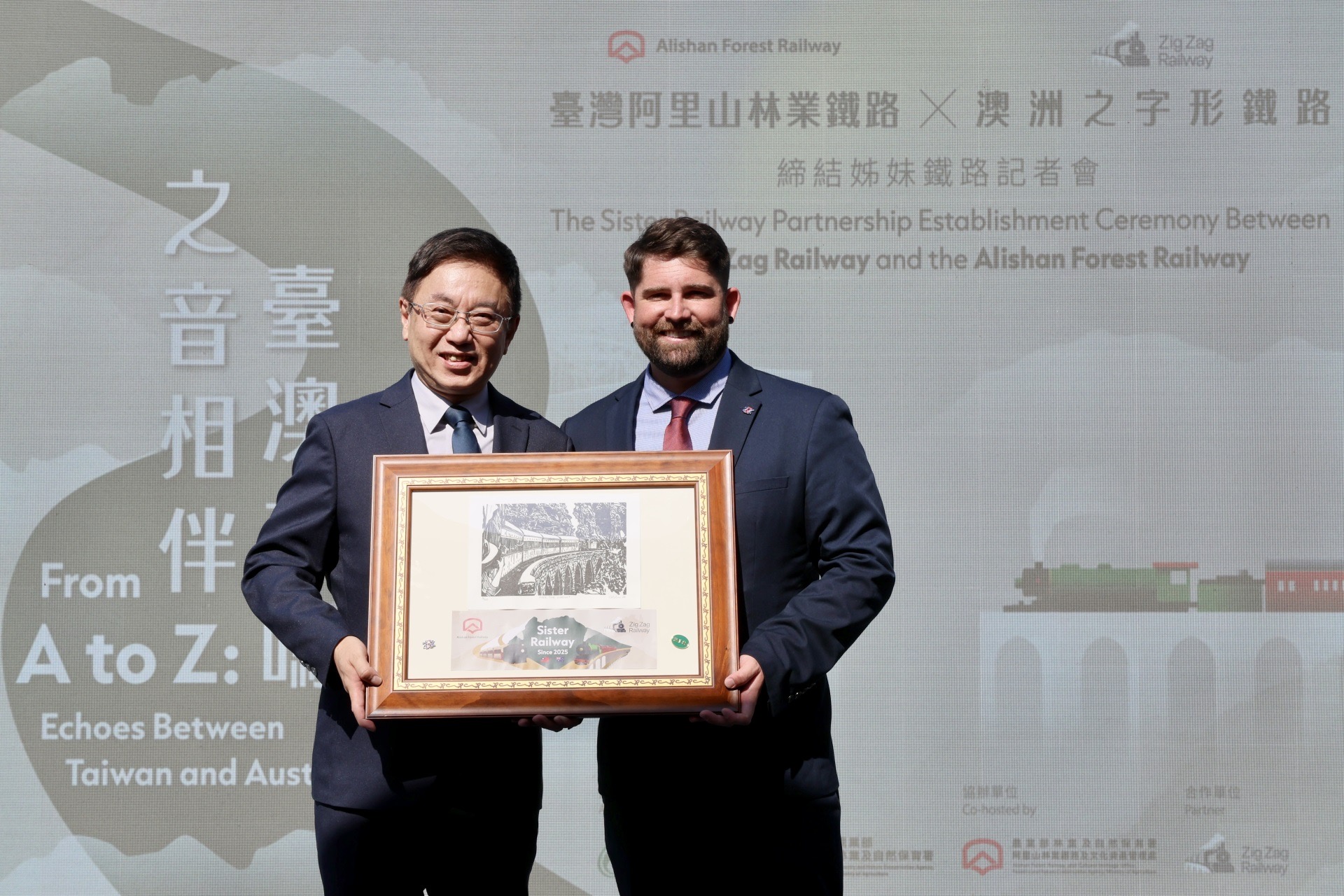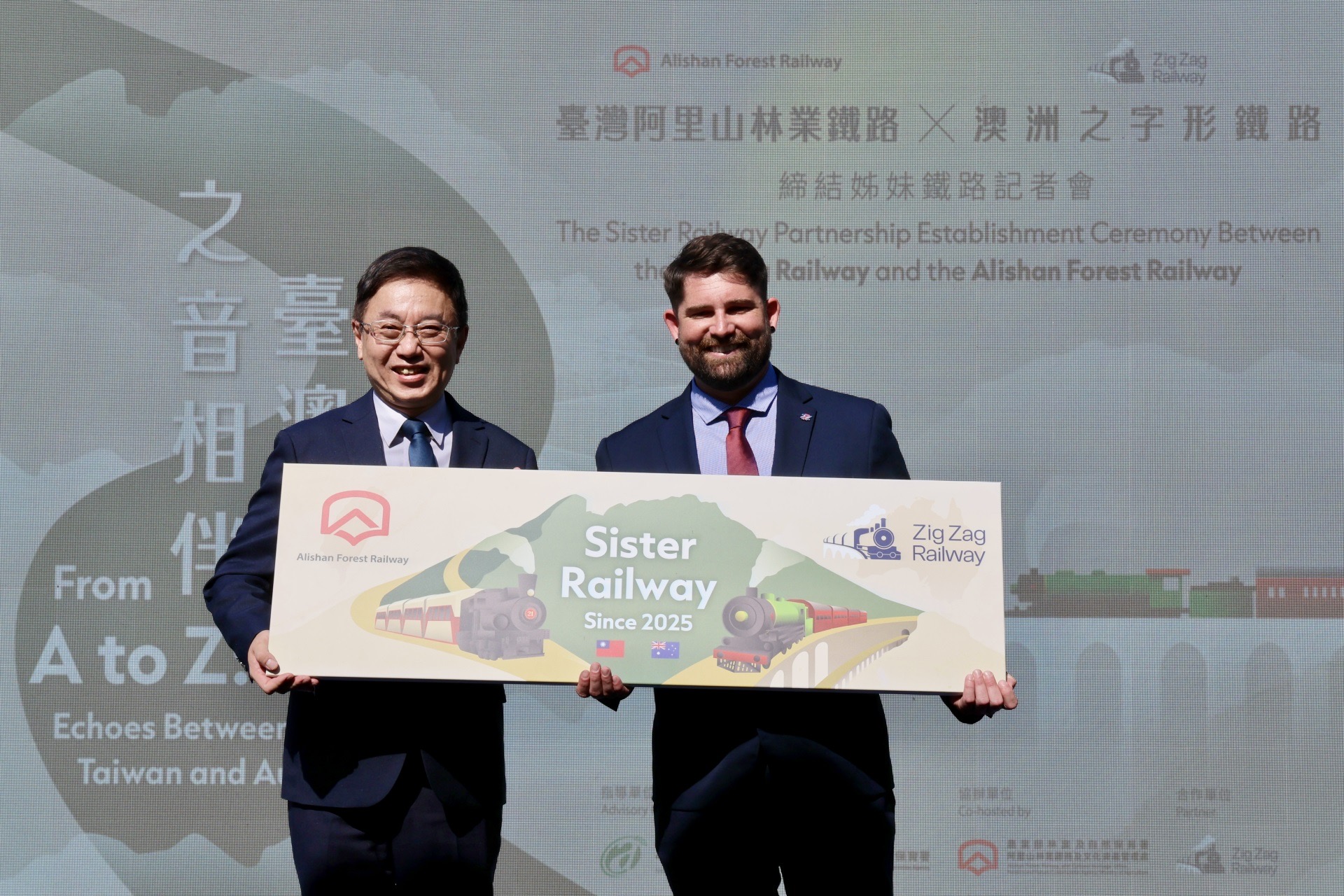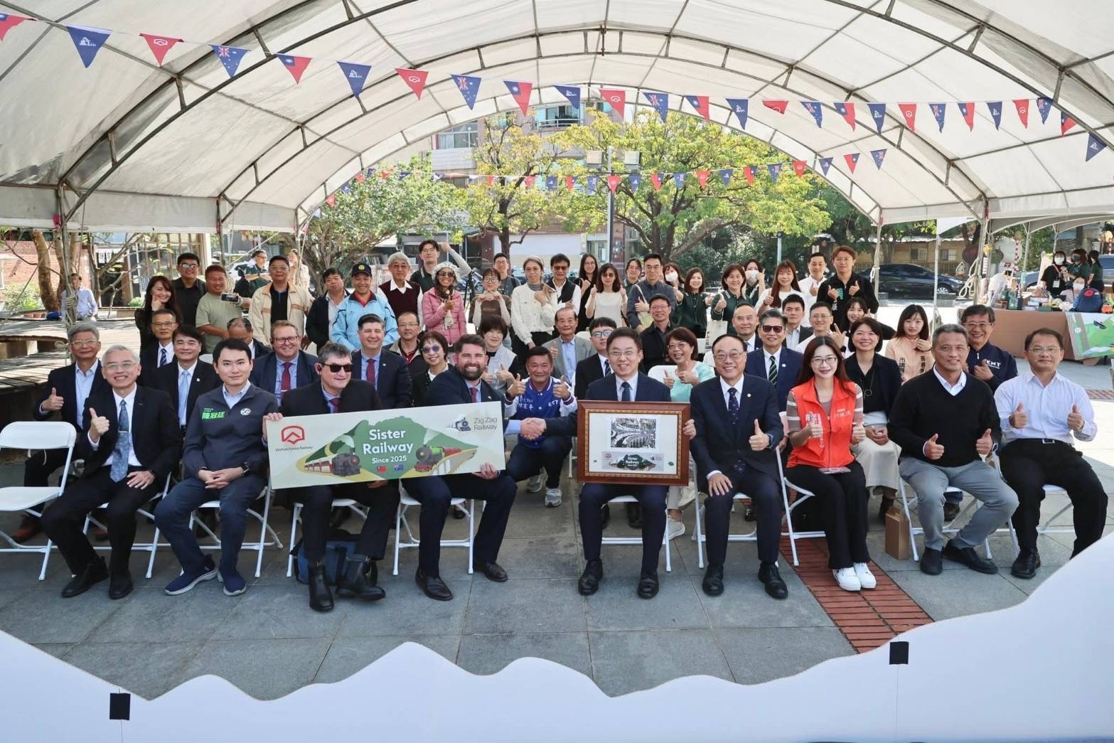 阿里山林業鐵路與澳洲新南威爾斯州的之字形鐵路(Zig Zag Railway),兩條同以「之」字形路線聞名的百年產業鐵路,9日在阿里山林鐵北門驛締結為姊妹鐵路,行政院雲嘉南區聯合服務中心副執行長陳怡帆受邀一同見證了臺澳雙方以智慧克服地形限制、與山林共生的精神,更是將阿里山林業鐵路的國際合作網絡首度擴展至大洋洲,為全球遺產鐵路保存與永續樹立新里程碑。(詳細介紹可參考下方連結https://afrch.forest.gov.tw/AllNews/0077538)