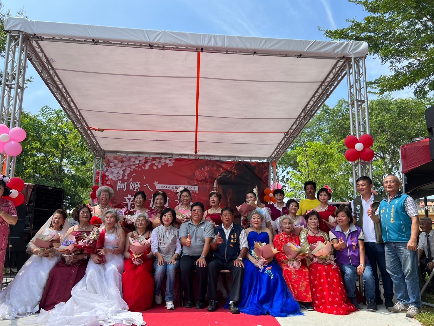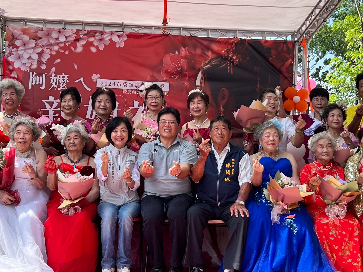 「2024布袋鎮農村文化季暨農漁特產品推廣活動」於9月28日至29日舉辦,活動主題之一的「阿嬤ㄟ新娘衫」於29日在過溝公園辦理,行政院雲嘉南區聯合服務中心副執行長李碧菁、布袋鎮長蔡瑋傑等貴賓出席觀禮。