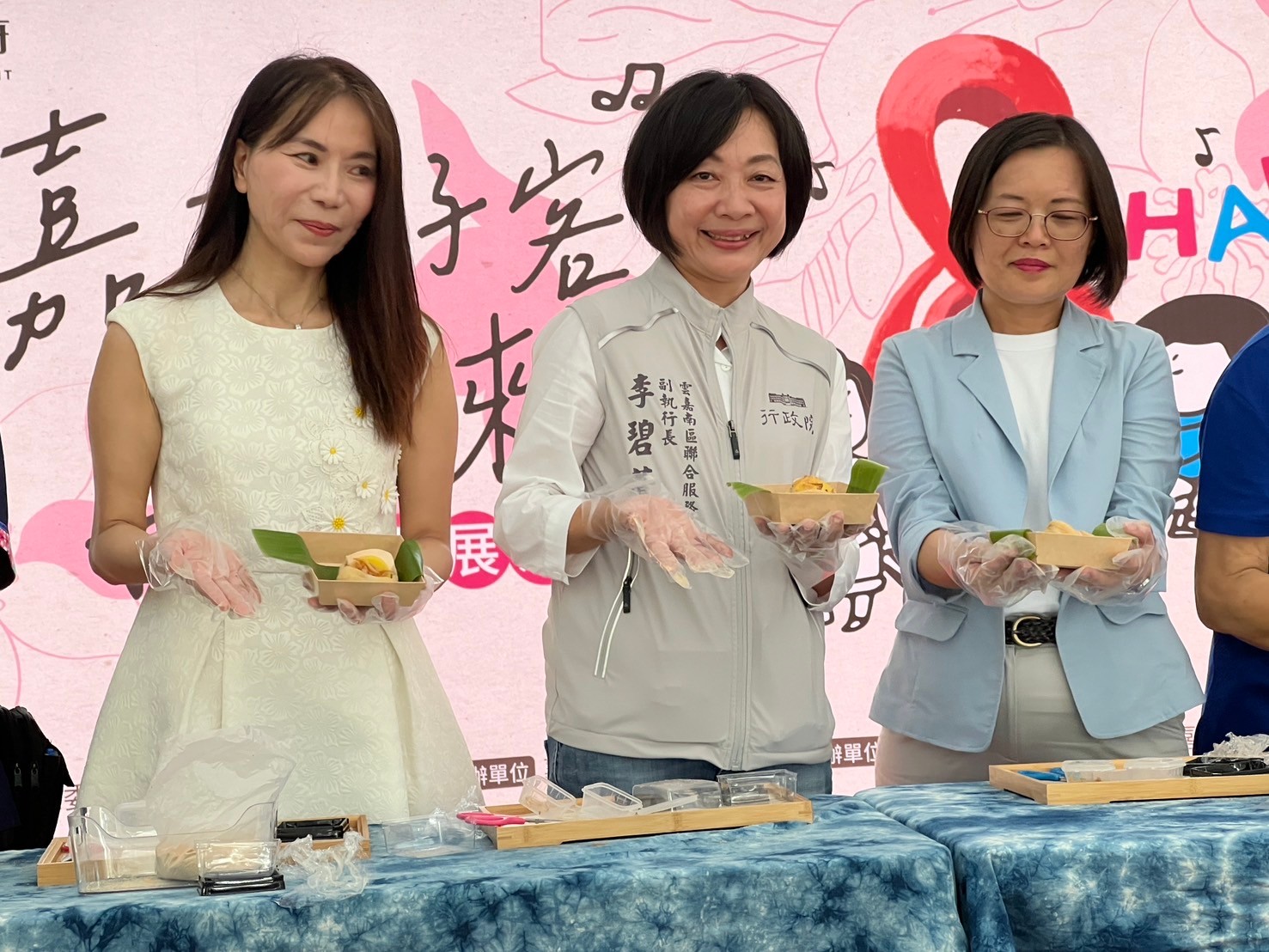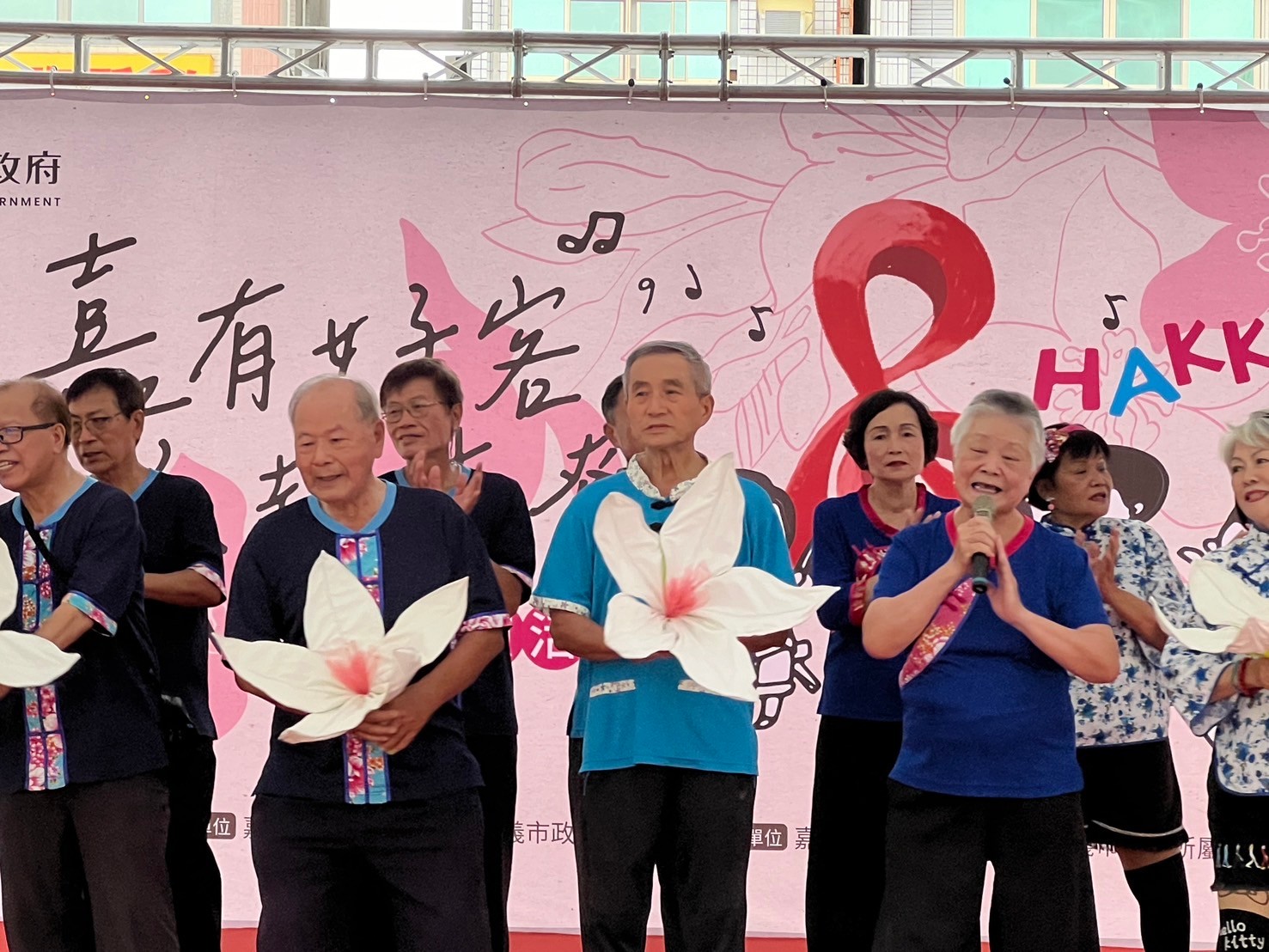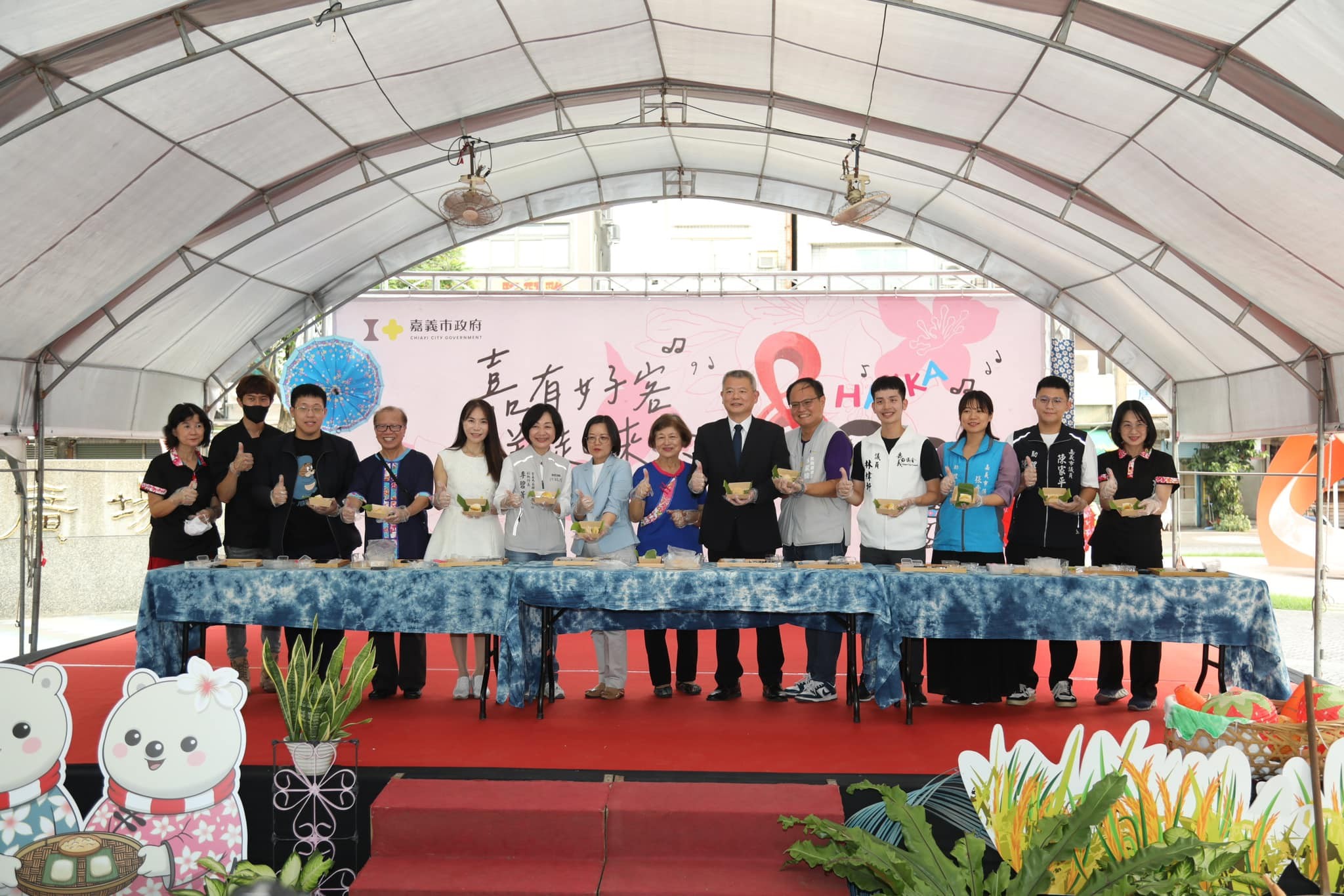 「嘉有好客 義起來尞」成果展演活動於29日在中央廣場舉辦,行政院雲嘉南區聯合服務中心副執行長李碧菁出席共襄盛舉,現場由客家文化協會桃城樂府演出客家民謠、八音,更結合客家趣味闖關、客語粢粑DIY、客家傳統市集及政令宣導攤位等活動,現場熱鬧滾滾,展現這一年來傳承客家文化的精彩成果。