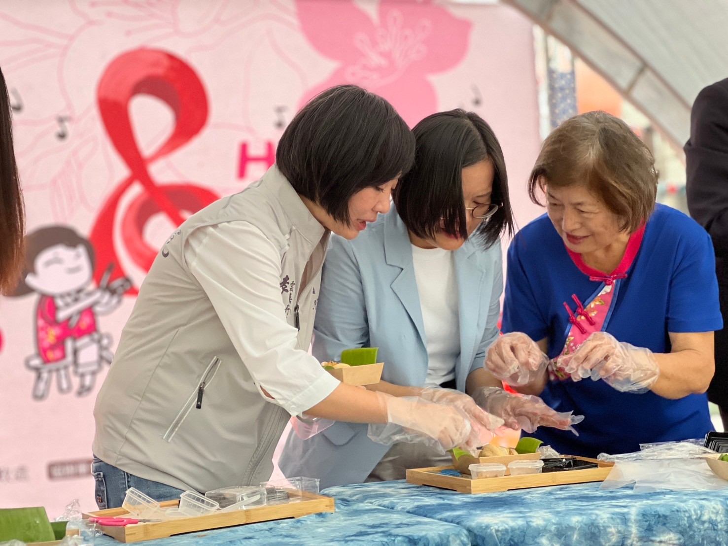 今天活動的一大亮點就是由嘉義市的音樂家毛嘉婧老師,帶領客家文化協會師徒聯手演唱電影「真善美」經典歌「Edelweiss 小白花」、「Do -Re -Mi」,載歌載舞演出客英組曲,驚豔全場;而火雞肉飯粢粑DIY活動,特地將嘉義最在地的庶民小吃火雞肉飯與客家最具特色的傳統點心粢粑(麻糬)創意結合,強強聯手,香Q柔軟的麻糬,以香噴噴的火雞肉飯為餡,揉合出令人意想不到的驚喜美味,成功打造出全台獨「嘉」口味。