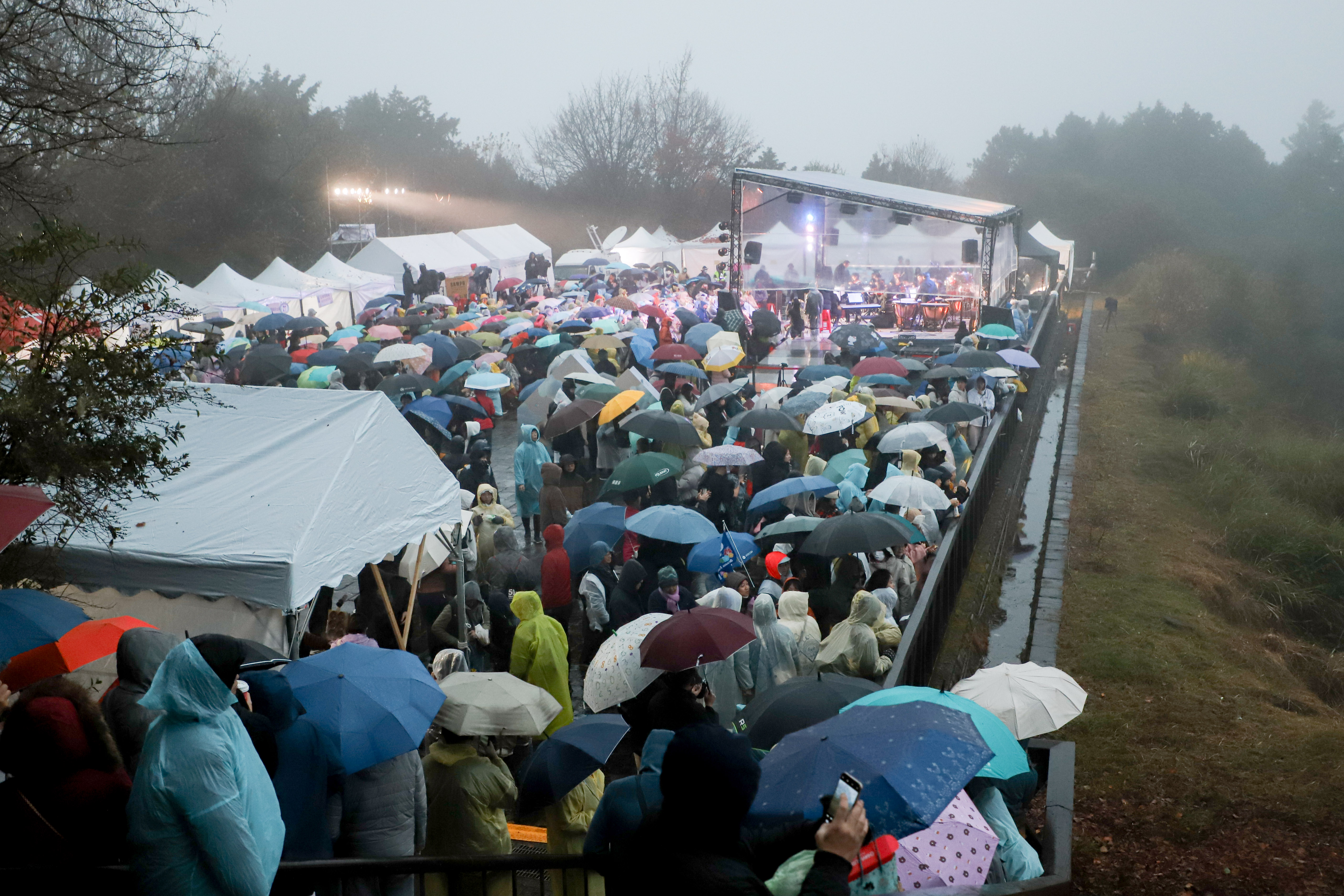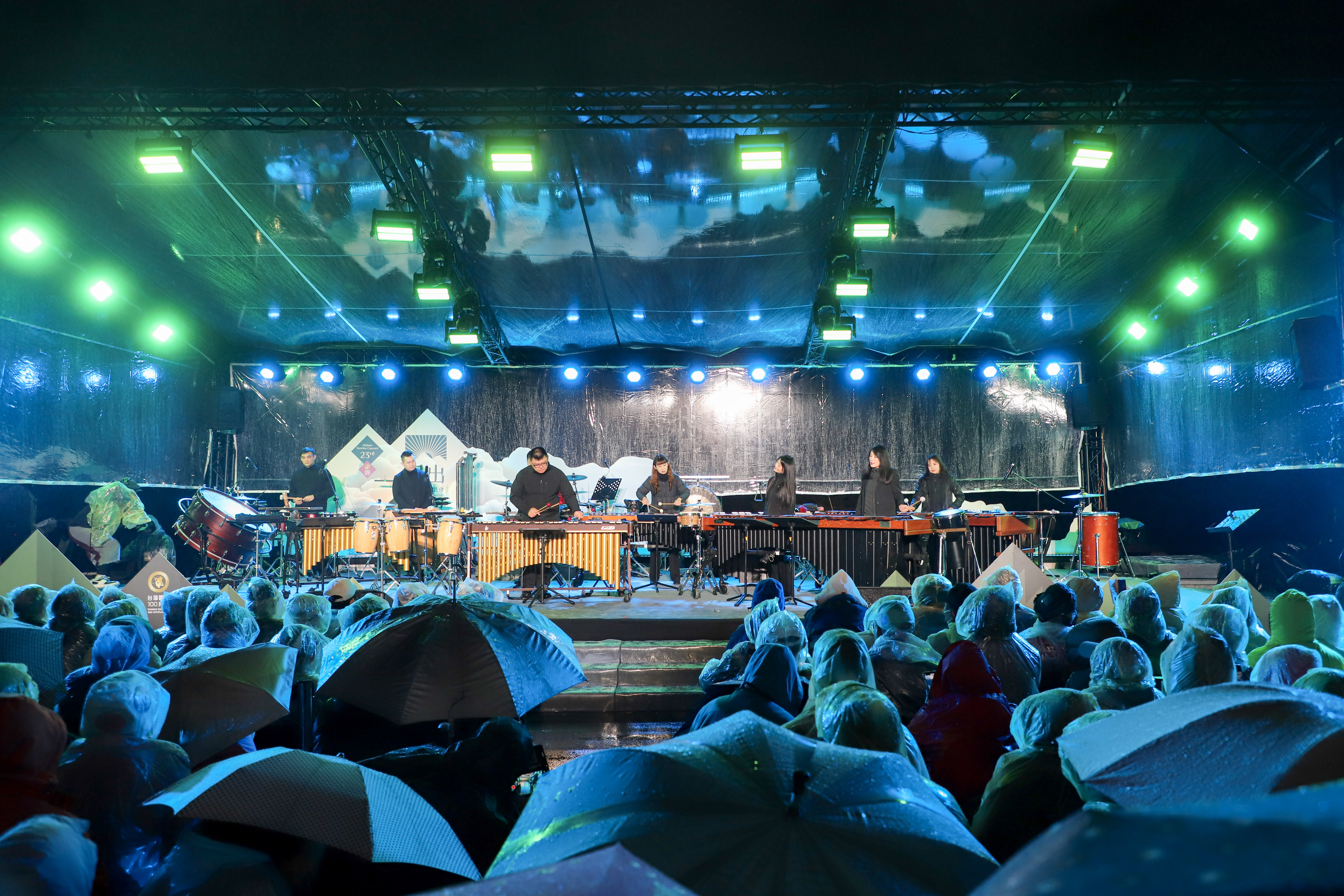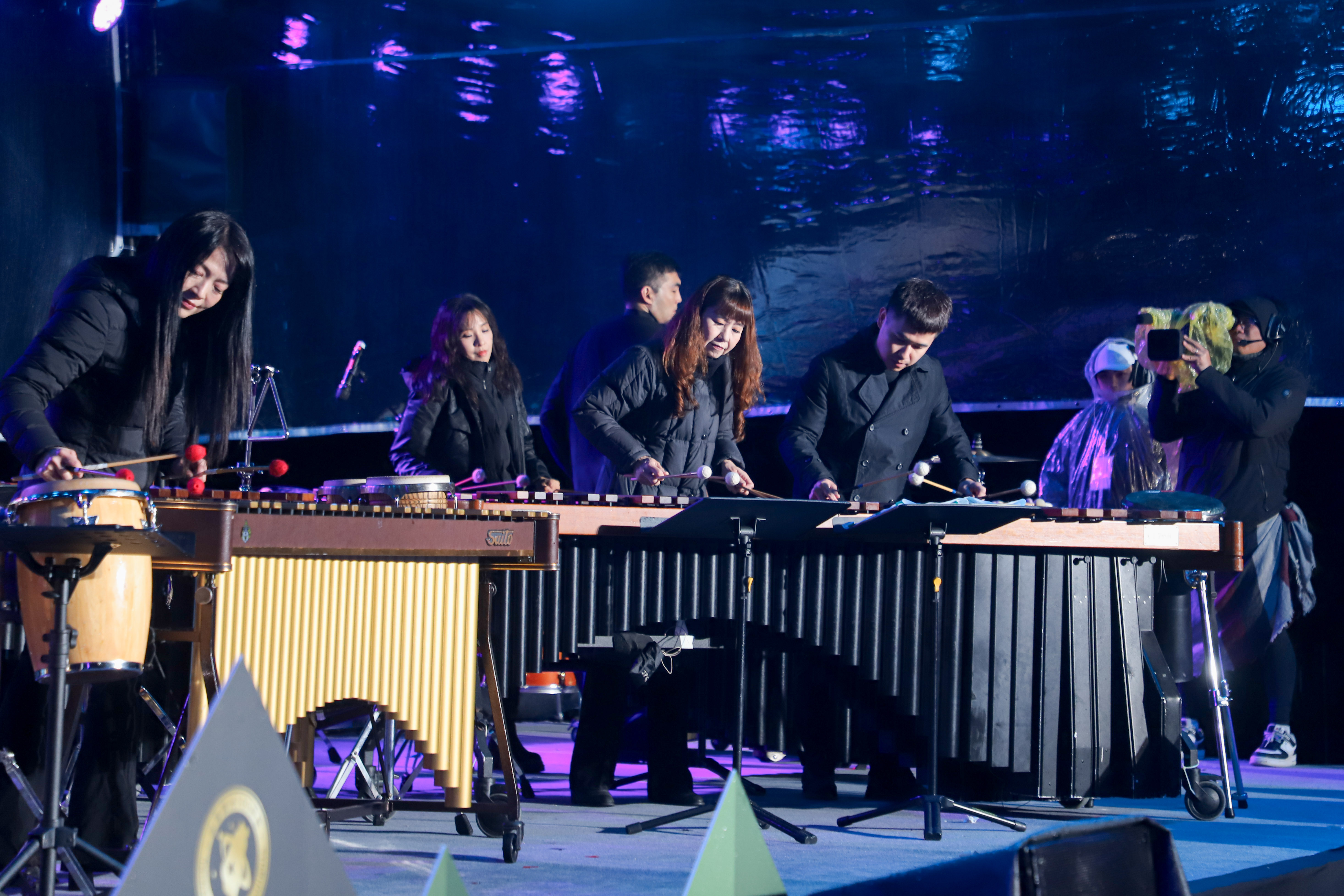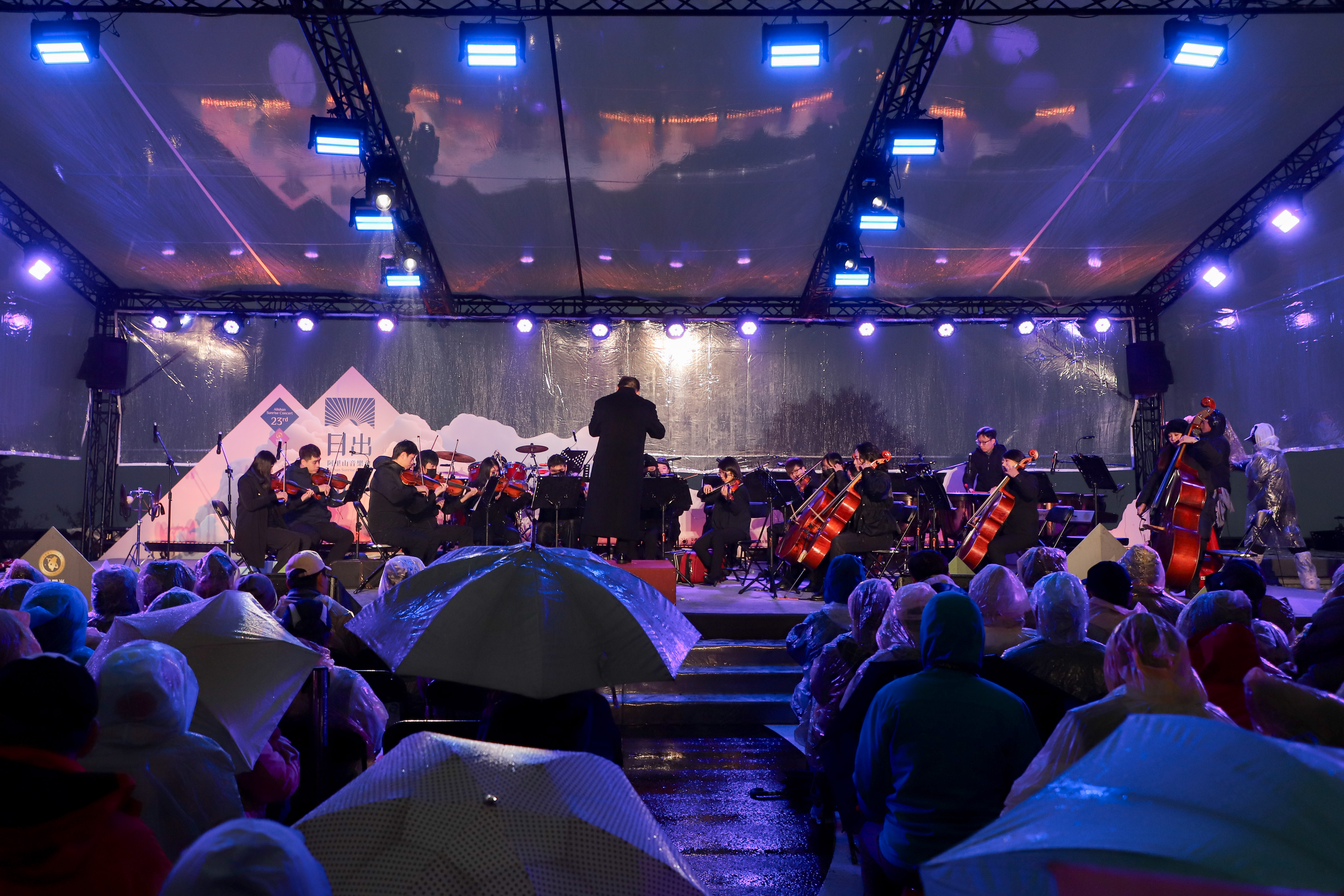 儘管陰雨綿綿,雲層遮蔽日出,但仍吸引大批民眾齊聚祝山觀日平台,兩大樂團也演奏激昂歡快的「快樂頌」帶領眾人為新年祈福。華裔美籍創作才子林中宣(Sam Lin)也攜手在地鄒族「阿里山風笛Euvuvu表演藝術團」接力登場,演出日出印象全新主題曲「步上軌 向前看」,以動人旋律與舞蹈為觀眾帶來希望。
