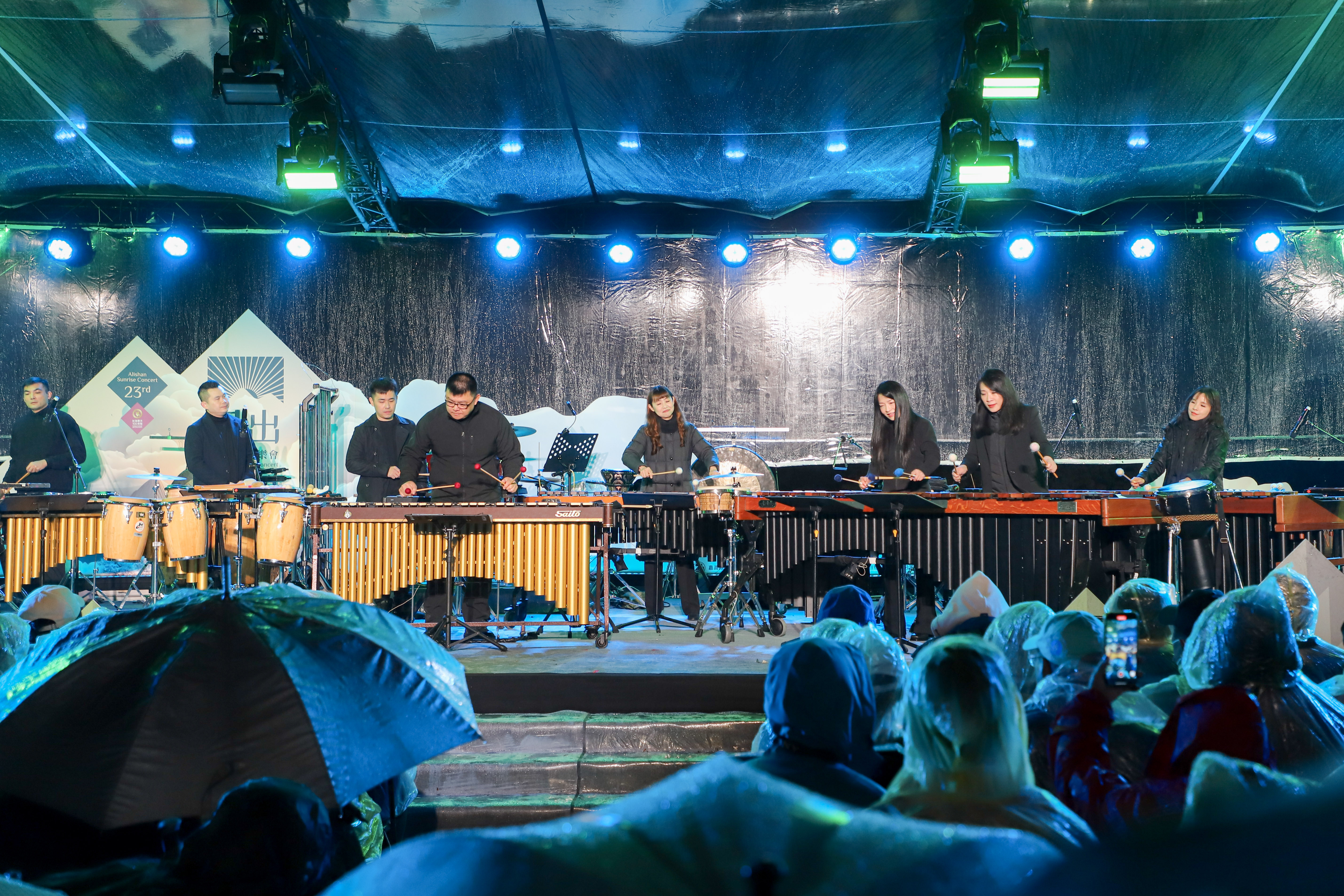 嘉義縣阿里山日出印象音樂會今年邁入第23年,行政院雲嘉南區聯合服務中心副執行長李碧菁於1日清晨親臨現場,與遊客一同在樂聲中等待天亮。音樂會自凌晨5點半開演,由朱宗慶打擊樂團與樂興之時管絃樂團在祝山觀日平台接力演出,以悠揚樂聲迎接2025年的首道曙光。