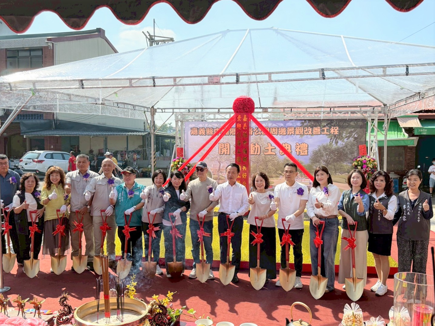嘉義縣政府於11月16日上午舉辦「嘉義縣中埔鄉共好公園周邊景觀改善工程」開工動土典禮,地方貴賓與中央代表到場參與,行政院雲嘉南區聯合服務中心副執行長李碧菁亦出席典禮,共同為工程啟動祈福。