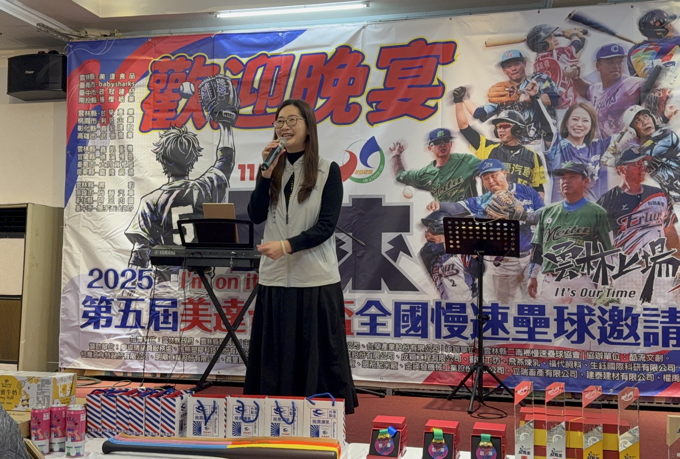 美達食品工業股份有限公司、台榮產業股份有限公司主辦2025第五屆美達台榮盃全國慢速壘球邀請賽,行政院雲嘉南區聯合服務中心副執行長陳怡帆受邀蒞臨共襄盛舉。