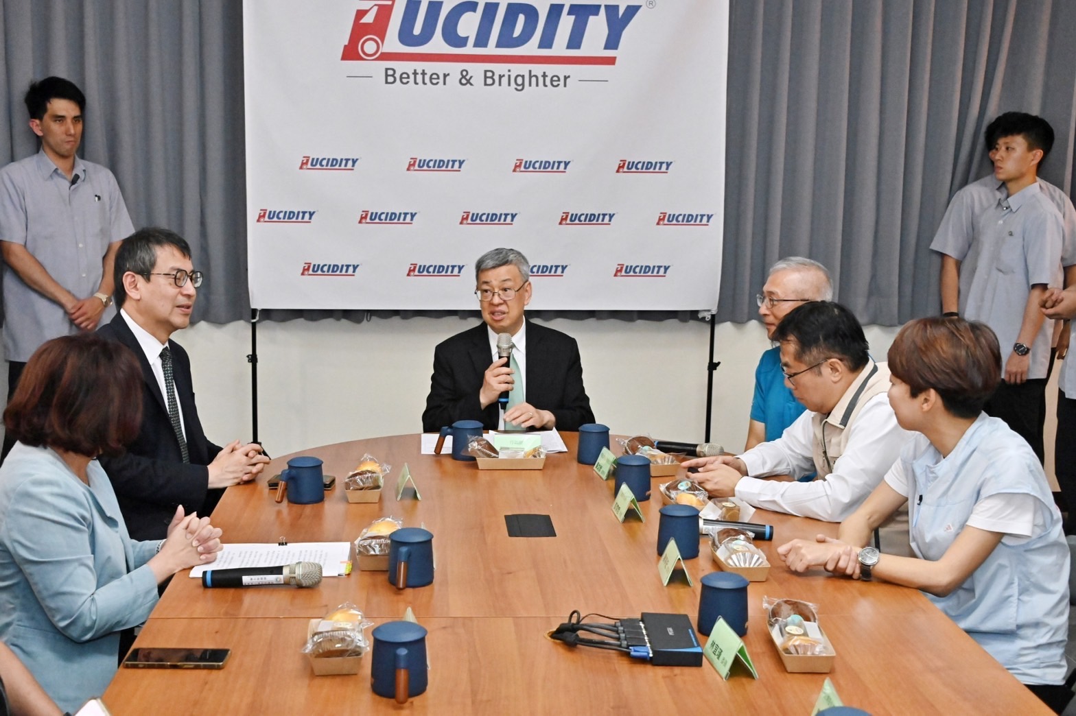 行政院長陳建仁在行政院林子倫發言人、行政院雲嘉南區聯合服務中心副執行長劉米山、勞動部許銘春部長、勞動力發展署蔡孟良署長、陳亭妃立委、臺南市黃偉哲市長等人的陪同下,於18日前往臺南市璨揚企業股份有限公司(Lucidity)參訪,首先聽取璨揚企業公司黃文献董事長簡報該公司員工福利、設備設施等介紹,隨後,在黃董事長陪同解說下,訪視該公司車燈組裝產線聽障員工工作情形,陳院長並於手寫板寫上「加油!」,鼓勵現場聽障員工。