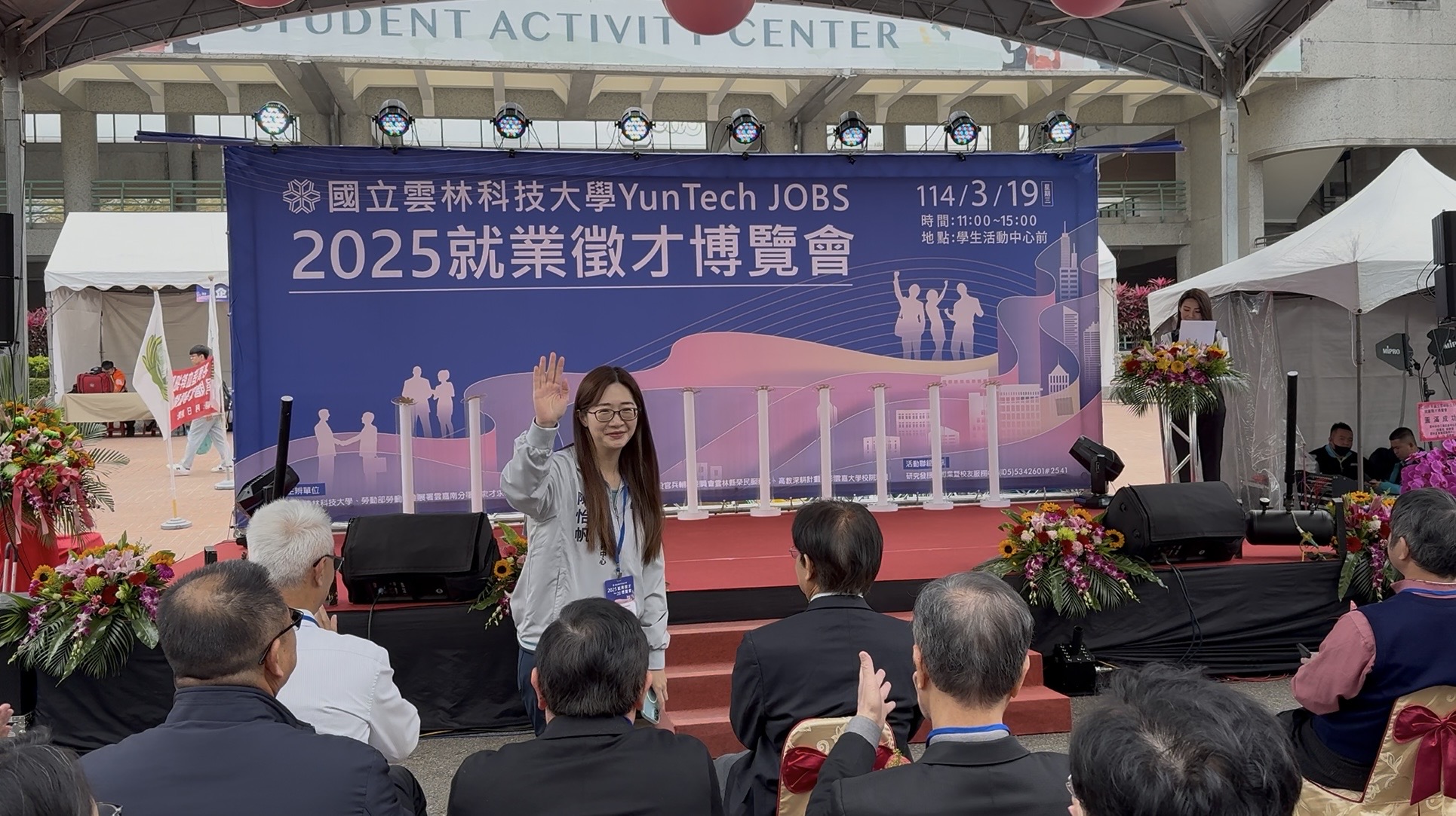國立雲林科技大學2025年校園就業徵才博覽會於19日在雲科大學生活動中心前登場,行政院雲嘉南區聯合服務中心副執行長陳怡帆出席2025年校園就業徵才博覽會開幕式,此次就博會由勞動部勞動力發展署雲嘉南分署和雲科大共同主辦,現場共118家知名企業設攤徵才,職缺近萬,提供學校應屆畢業生和求職民眾豐富的就業機會。