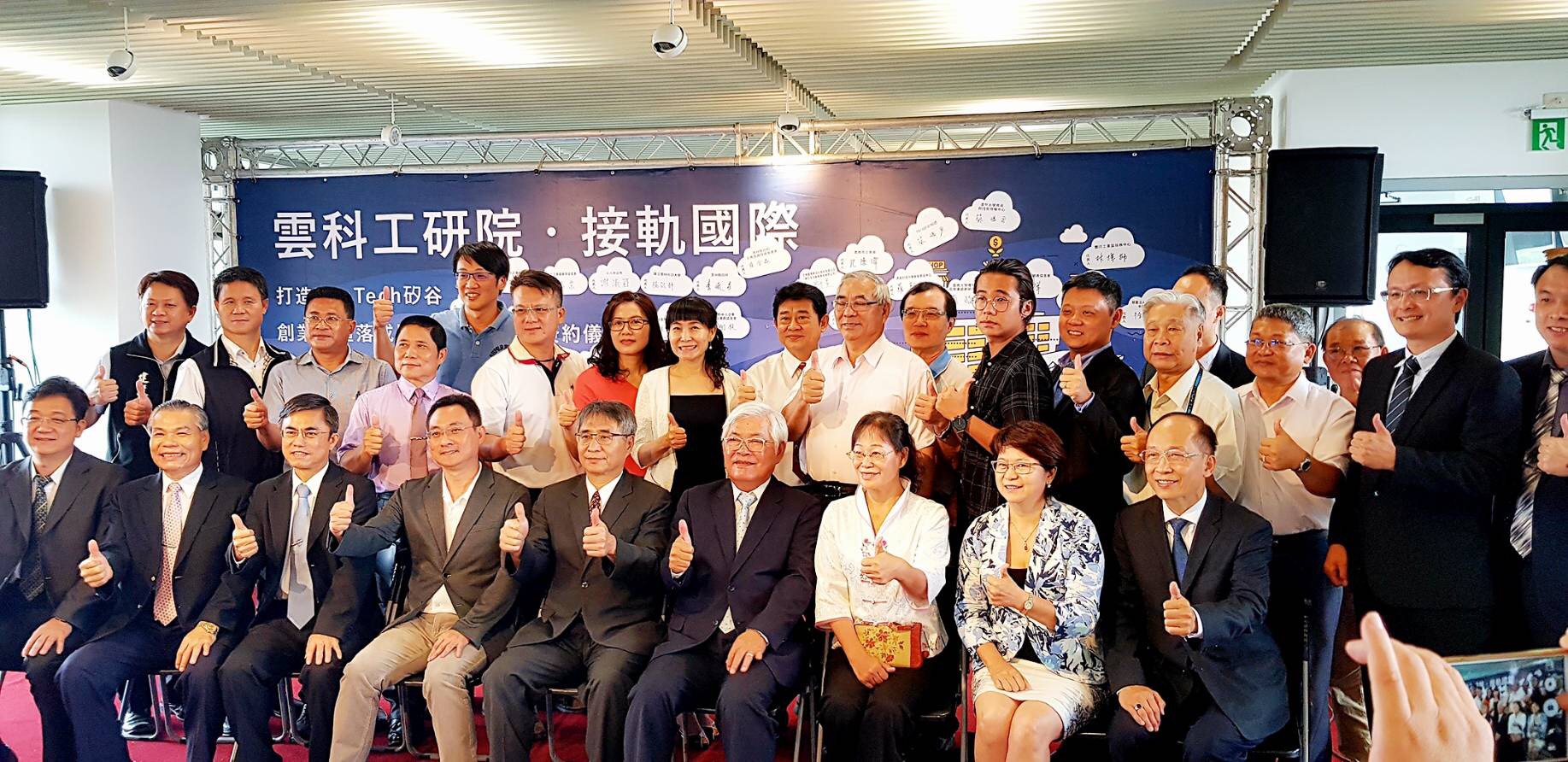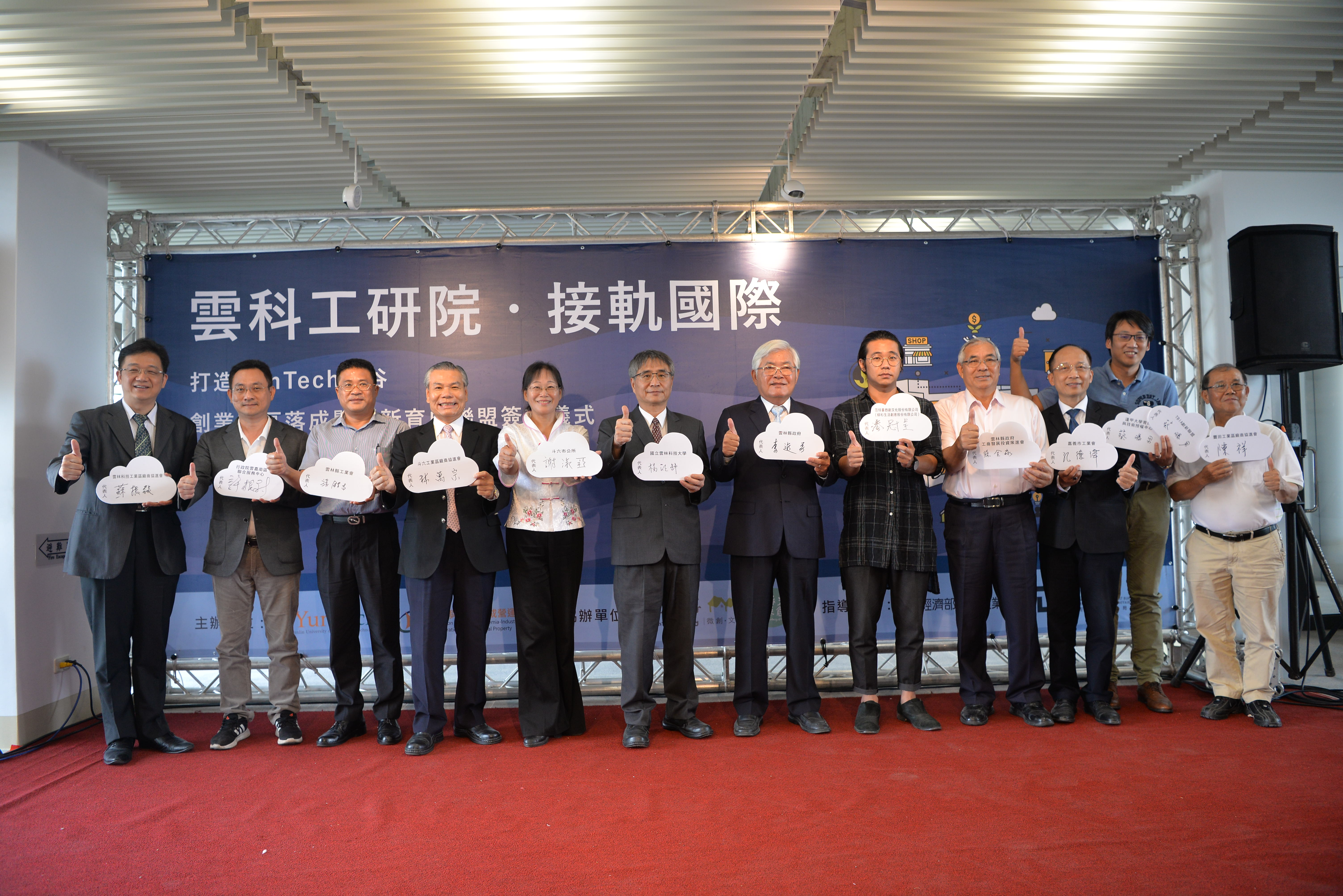 張傳育研發長表示,雲科大育成中心運用本校四大學院優勢,結合公部門、企業社團、創投等各項資源,串聯「雲中街文創園區」與「古坑綠色隧道」,打造YunTech矽谷基地。活動現場邀請超過20個夥伴單位進行創新育成聯盟簽約儀式,包含:行政院雲嘉南區聯合服務中心、雲林縣政府、斗六市公所、各工業區協進會、資策會、中部大學育成中心和民間育成范特喜綠光原創等成功簽署合作協議,將共同打造產學研大樓(YunTech Dream-Hub)為中區創業新聚落中心!目前園區企業進駐率已達7成,聚焦民生化工、電子資訊、文創科技三大領域,輔導企業包含雲林傳統產業、綠能產業與日本知名動畫企業。此外,亦提供Co-working Space商務共同辦公室,提供創業團隊或自由工作者進駐。