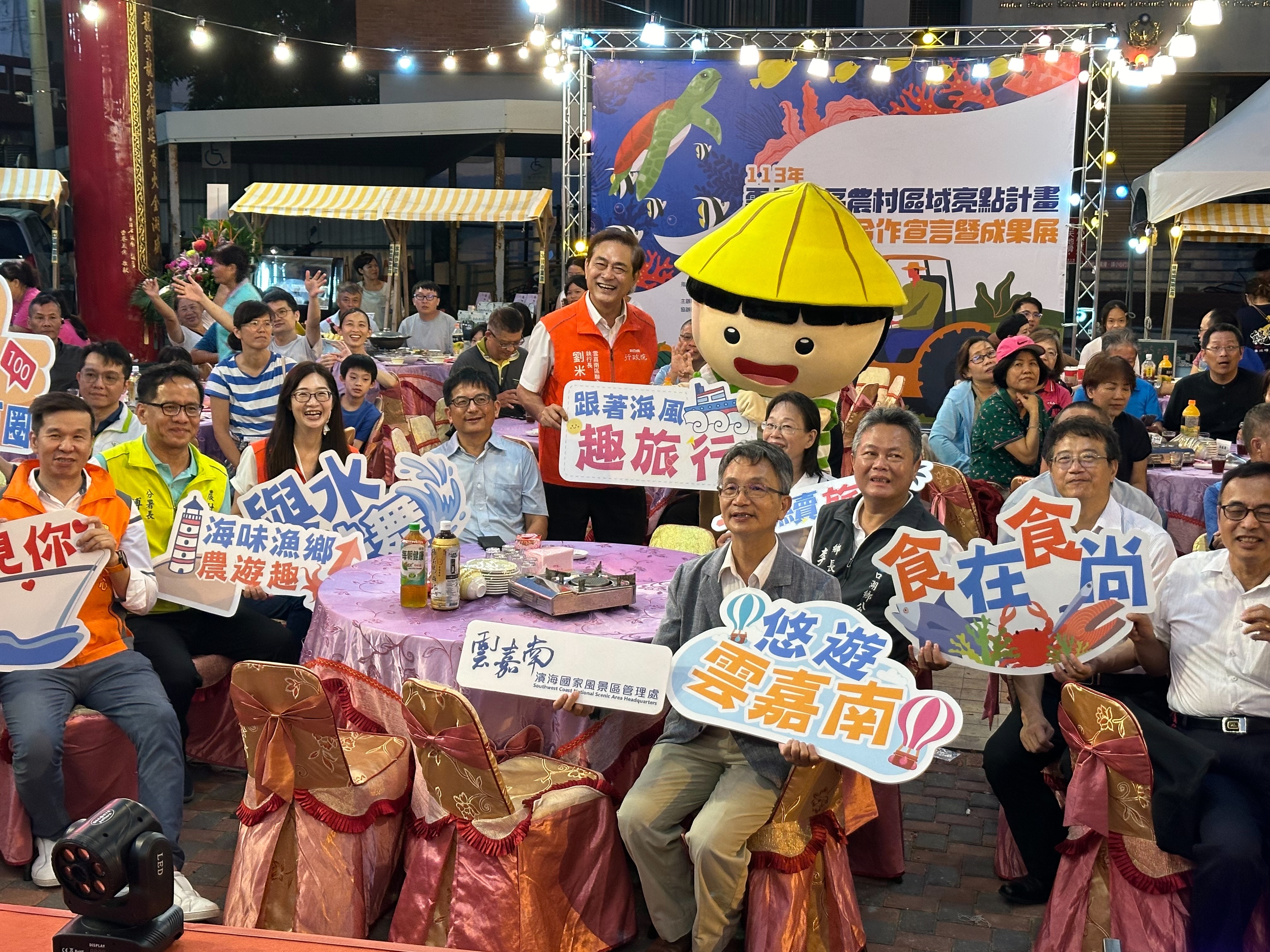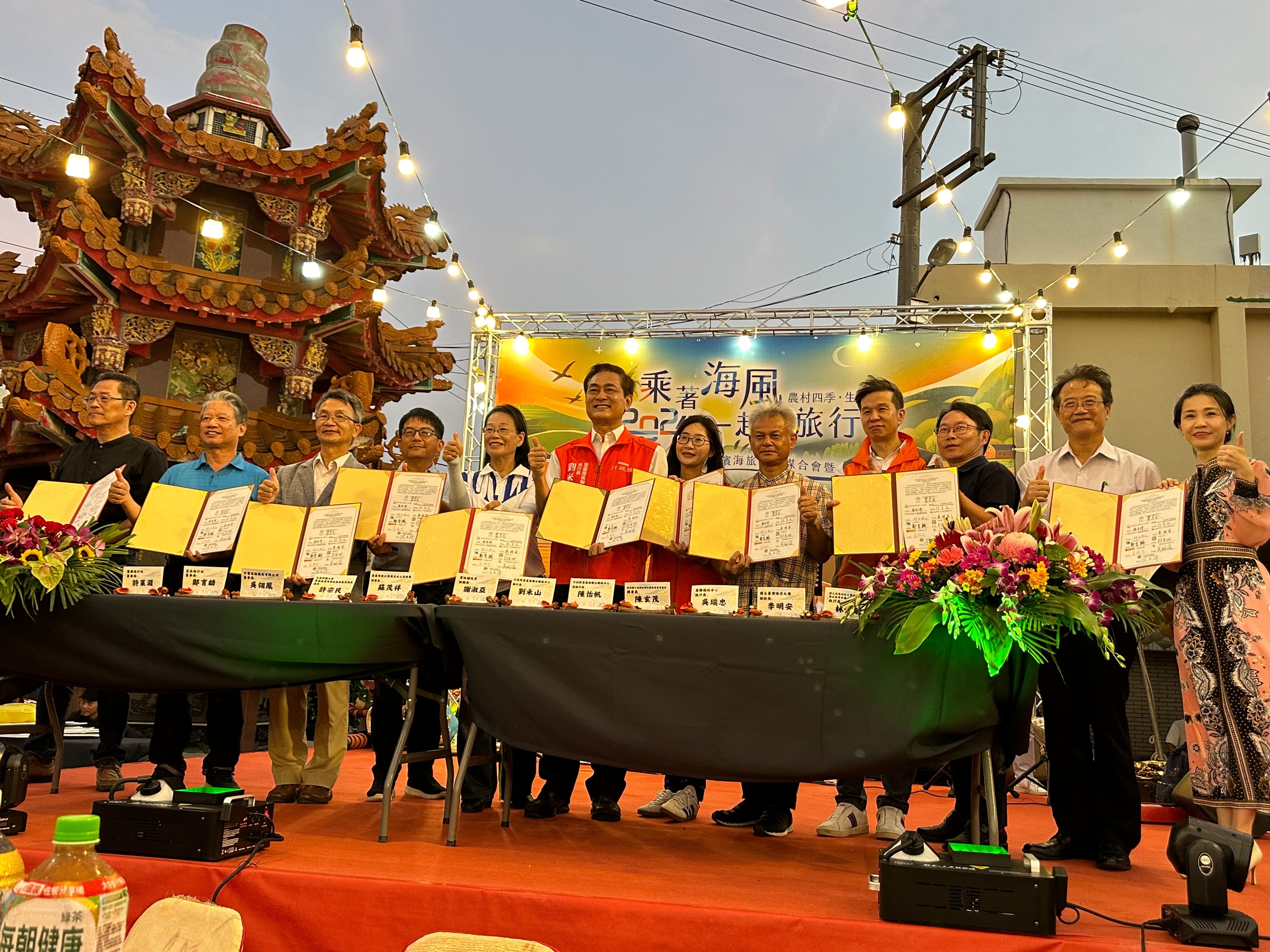 為行銷推廣雲嘉濱海軸帶優良農漁產、海味美食、海口文化及特色旅遊路線,農業部農村發展及水土保持署南投分署攜手交通部觀光署雲嘉南濱海國家風景區管理處與口湖鄉金湖休閒農業發展協會合作於28日在口湖鄉金湖龍台宮辦理「2024乘著海風一起去旅行 雲嘉濱海旅行業媒合會暨企業合作宣言」,行政院雲嘉南區聯合服務中心執行長劉米山、副執行長陳怡帆一同出席見證。