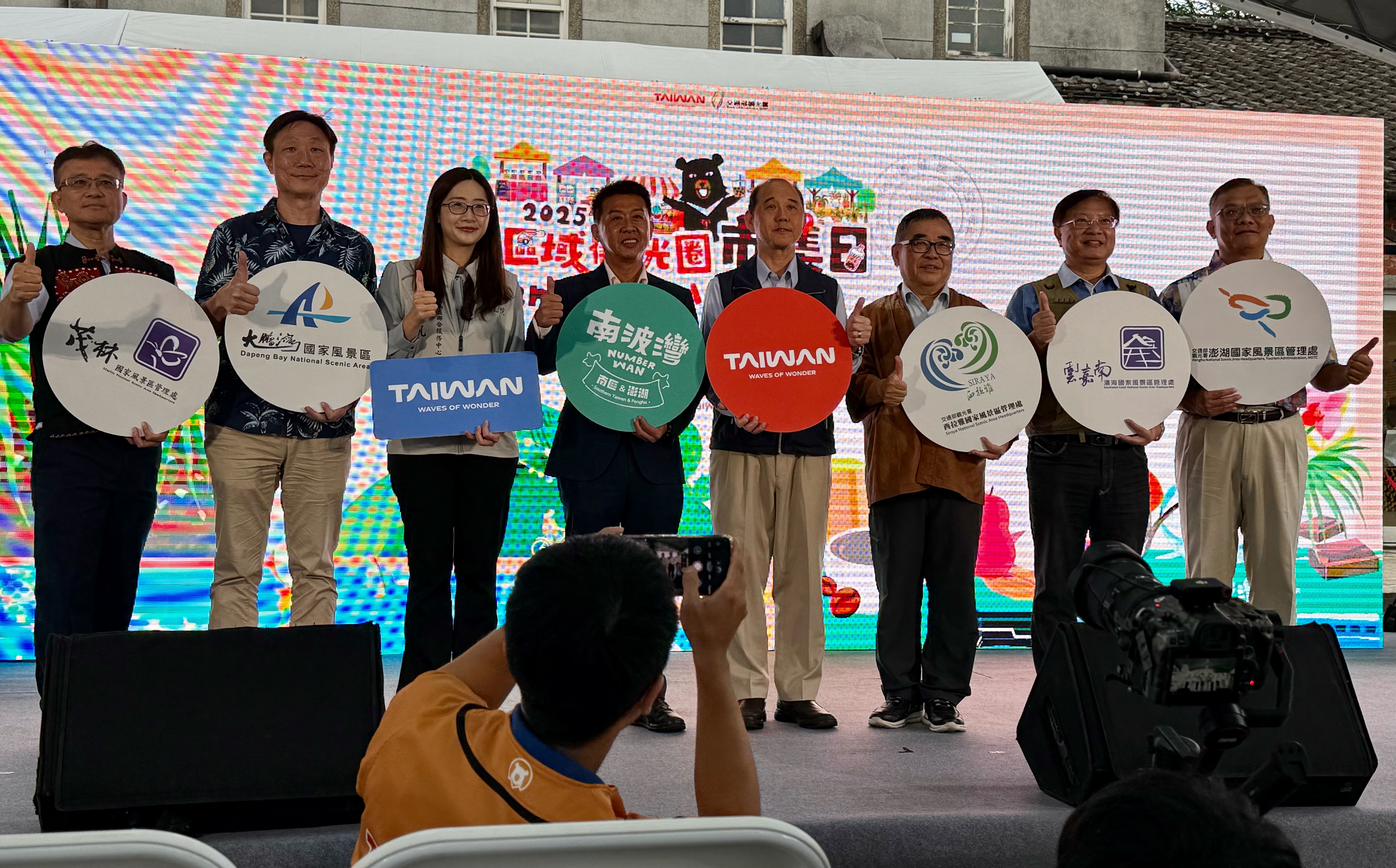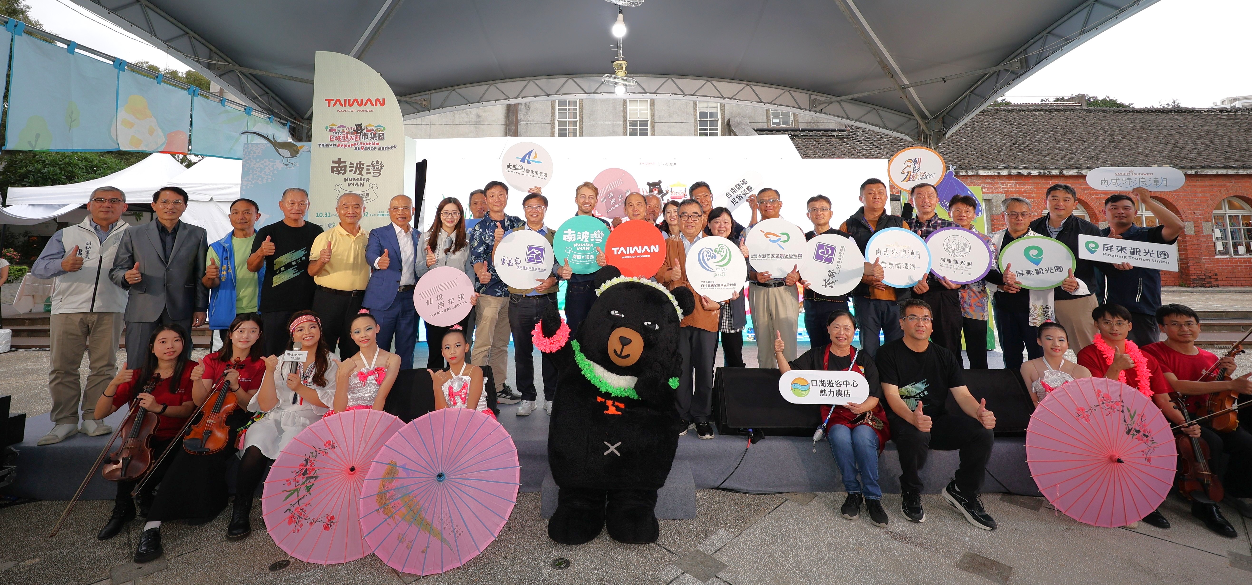 由交通部觀光署指導,西拉雅國家風景區管理處主辦,並偕同雲嘉南濱海、大鵬灣、茂林及澎湖等五大國家風景區管理處共同攜手舉辦的「2025區域觀光圈市集日南區&澎湖場──南波灣 Number WAN」,活動自10月31日至11月2日舉行三天,邀集南臺灣及澎湖共75家最具代表性的業者齊聚一堂,以「山、海、島」為核心意象,呈現南部與離島跨區域整合的全新樣貌,打造國際級旅遊品牌的嶄新篇章。31日在臺北華山劇場由立法委員許智傑、觀光署方正光主任秘書、行政院雲嘉南區聯合服務中心陳怡帆副執行長、西拉雅國家風景區管理處許主龍處長、雲嘉南濱海國家風景區管理處徐振能處長、澎湖國家風景區管理處郭振陵處長、大鵬灣國家風景區管理處施宗泓副處長、茂林國家風景區管理處陳俊綺秘書、阿里山國家風景區管理處黃怡平處長、臺南市西拉雅觀光產業協會林憲堂理事長、雲嘉南濱海產業文化觀光協會戴泳明理事長、屏東縣大鵬灣觀光產業聯盟許裕麟理事長、高雄觀光圈吳文豪副盟主、澎湖觀光圈陳仁和副總召集人、中華民國旅行業品質保障協會張永成理事長、台灣觀巴協會陳柏勳理事長等貴賓,一同為南波灣市集日揭幕。