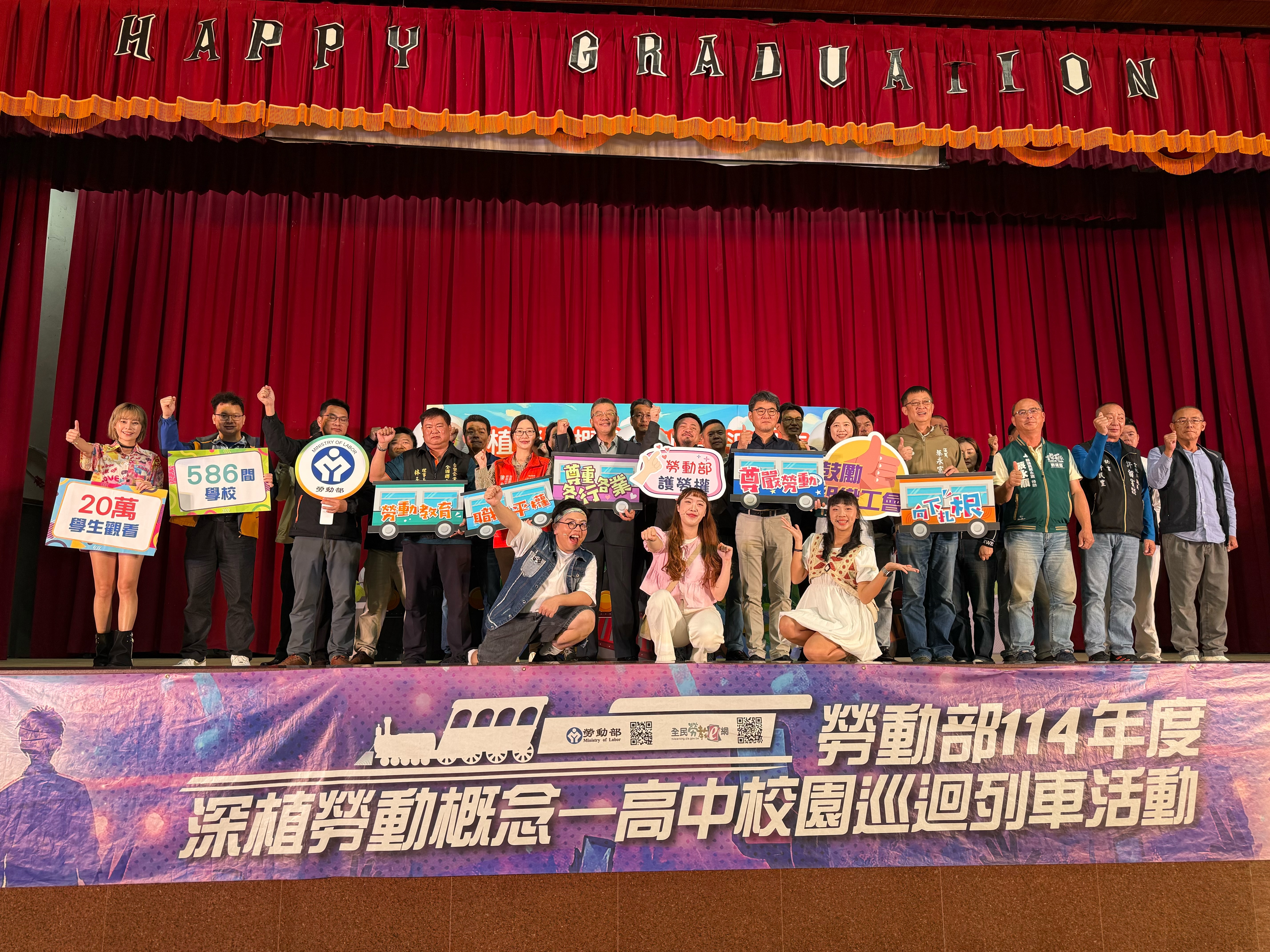 勞動部「114年度深植勞動概念-校園巡迴列車」11日到雲林縣麥寮高中,行政院雲嘉南區聯合服務中心副執行長陳怡帆蒞臨與學生一同認識勞動權益、職場安全與生涯規劃。(詳細介紹可參考下方連結 https://www.mol.gov.tw/1607/1632/1633/86933/post )