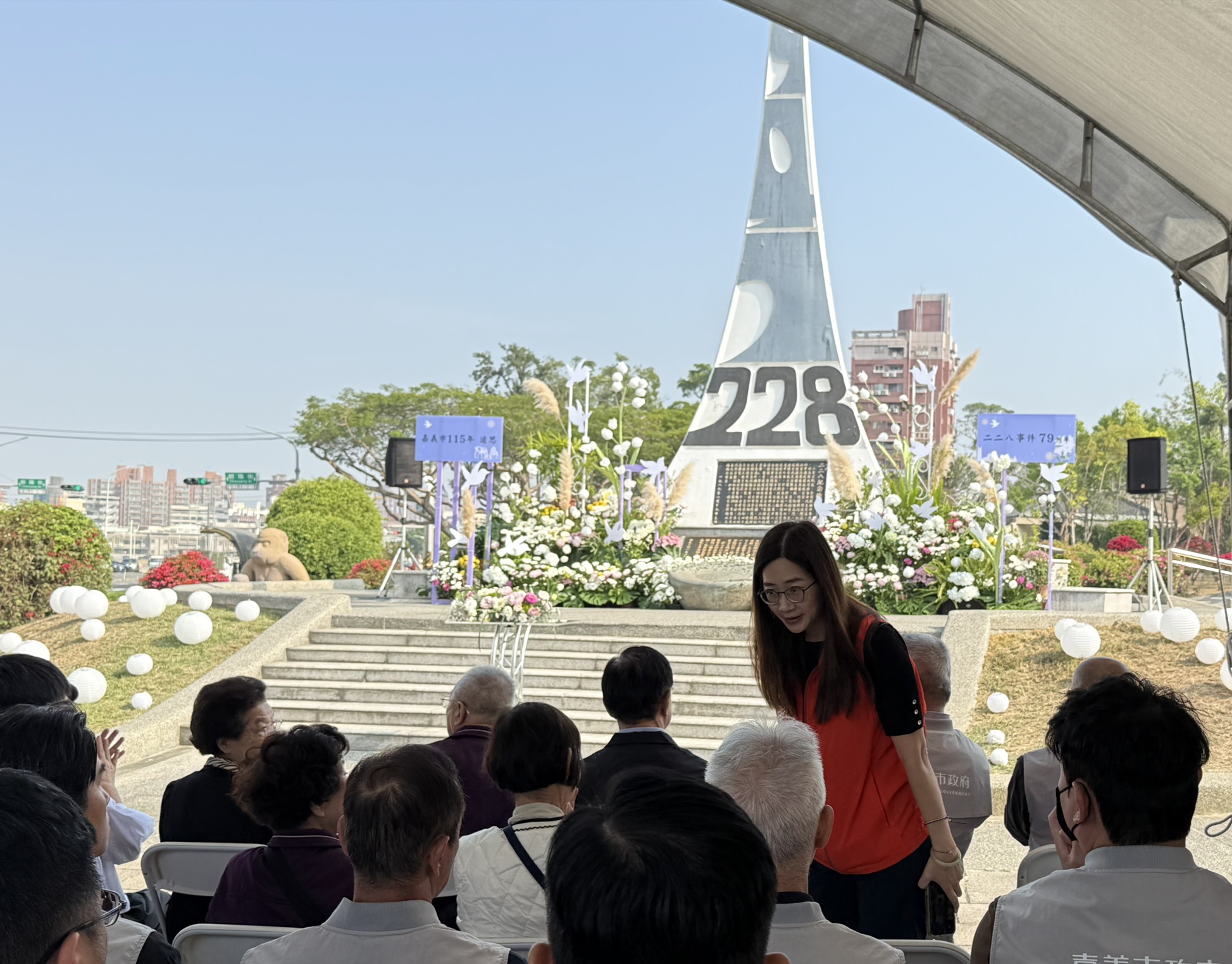 嘉義市政府於26日上午在嘉義市二二八紀念碑前舉辦二二八事件79週年追思紀念儀式,行政院雲嘉南區聯合服務中心副執行長陳怡帆一同與各界貴賓,於全台第一座二二八紀念碑前表達對受難者的哀悼與對家屬的深切關懷。(詳細介紹可參考下方連結https://www.chiayi.gov.tw/News_Content.aspx?n=455&s=930870)