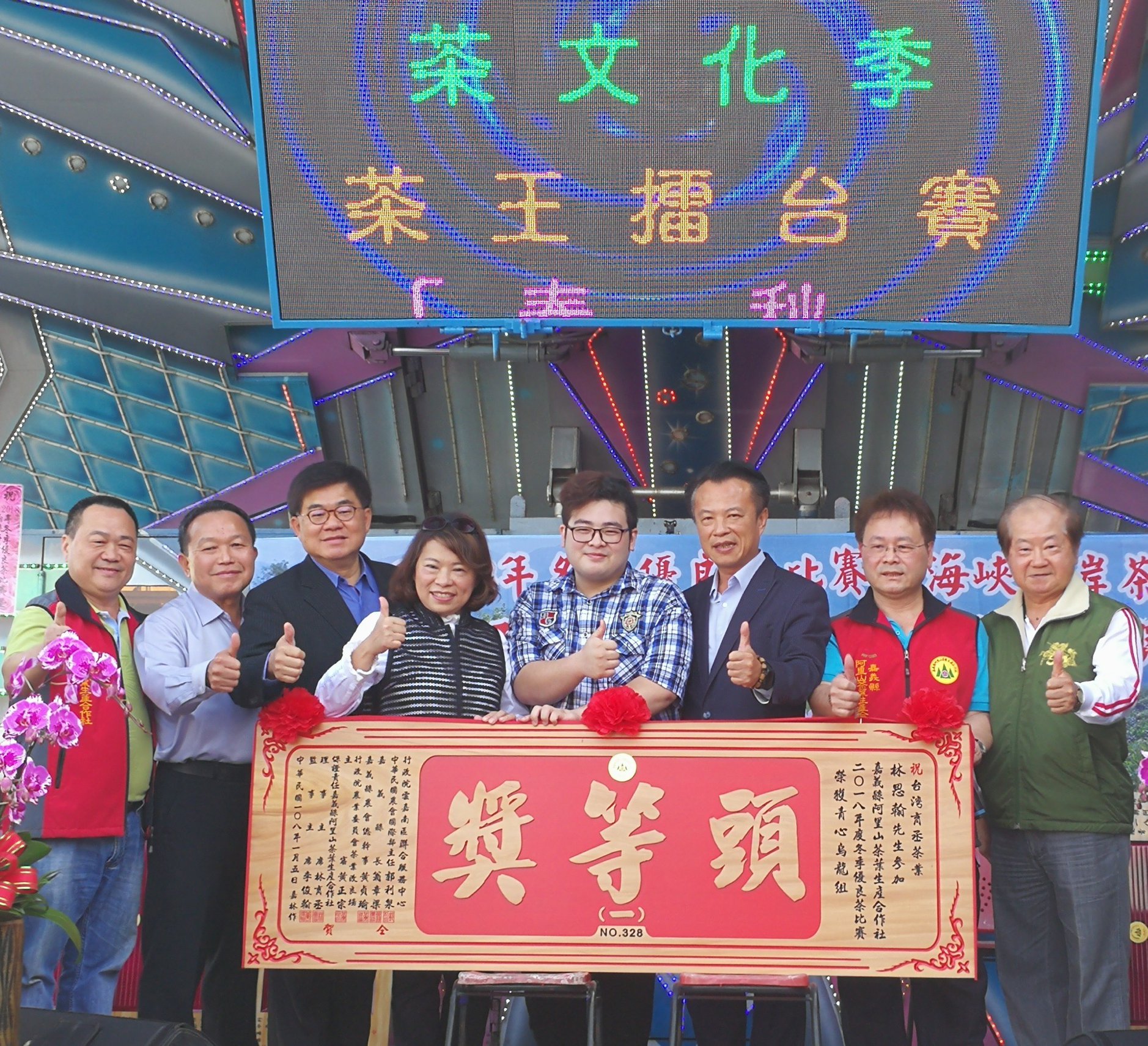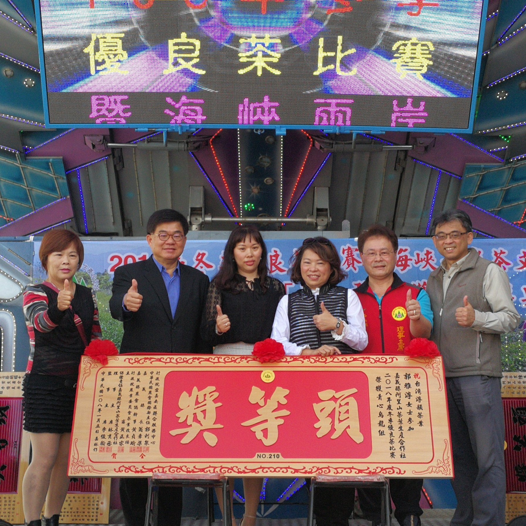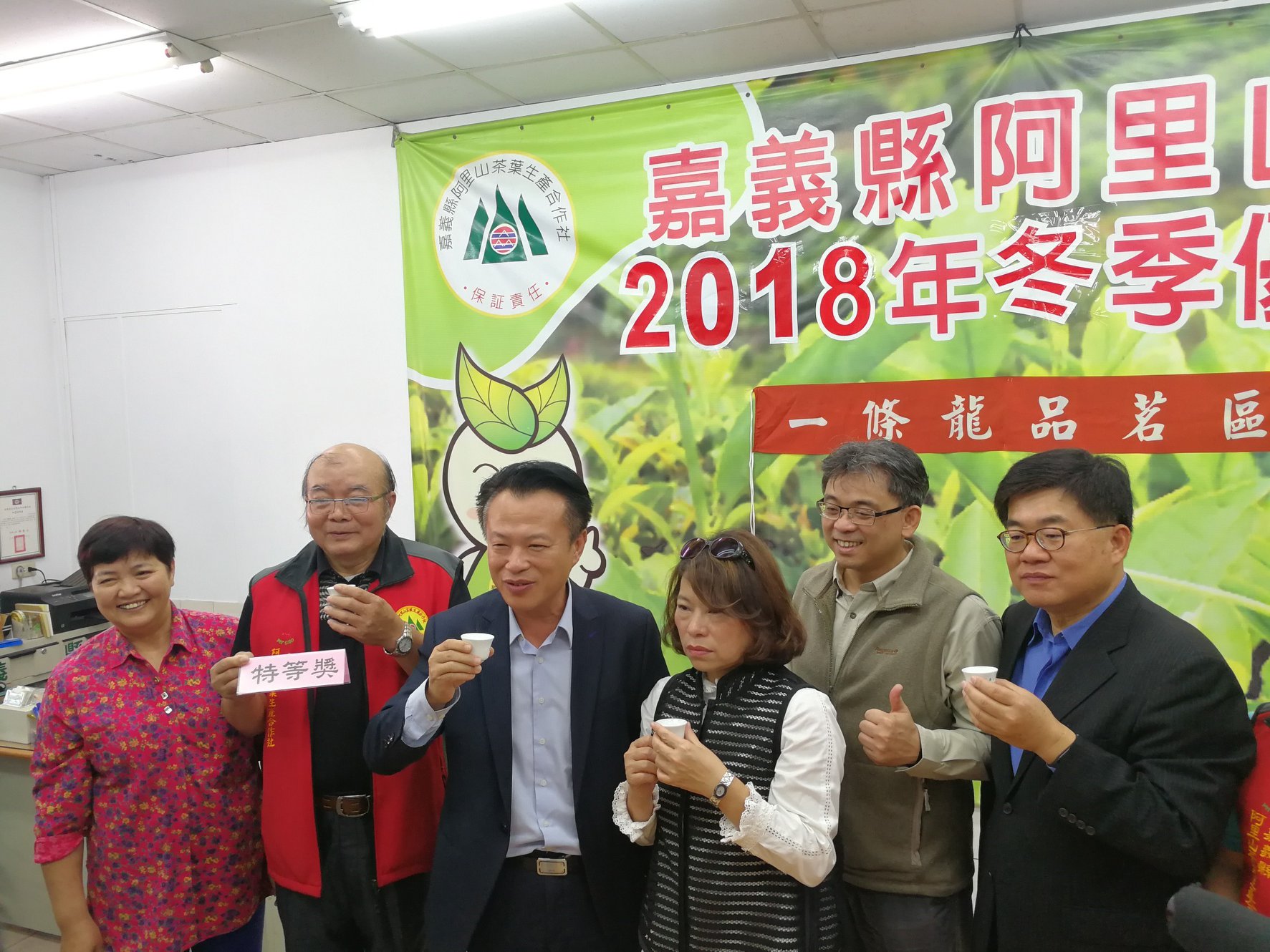 嘉義縣阿里山茶葉生產合作社1月5日上午頒發冬季優良茶競賽暨第七屆海峽兩岸茶文化季春、秋茶王擂台賽獲獎得主,竹崎鄉茶農劉嘉謨勇奪特等獎,林思翰頭等一獎,結合兩岸茶文化季春、秋茶王擂台賽在中埔鄉合作社門市舉行頒獎,嘉義縣長翁章梁、嘉義市長黃敏惠、行政院雲嘉南區聯合服務中心副執行長徐文志等人都到場致意。