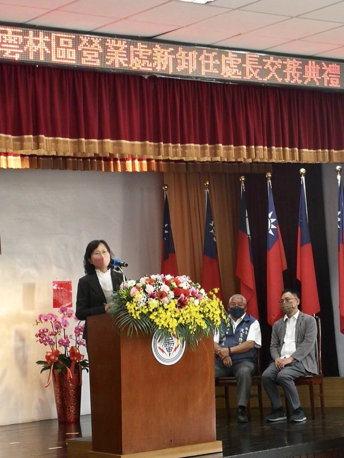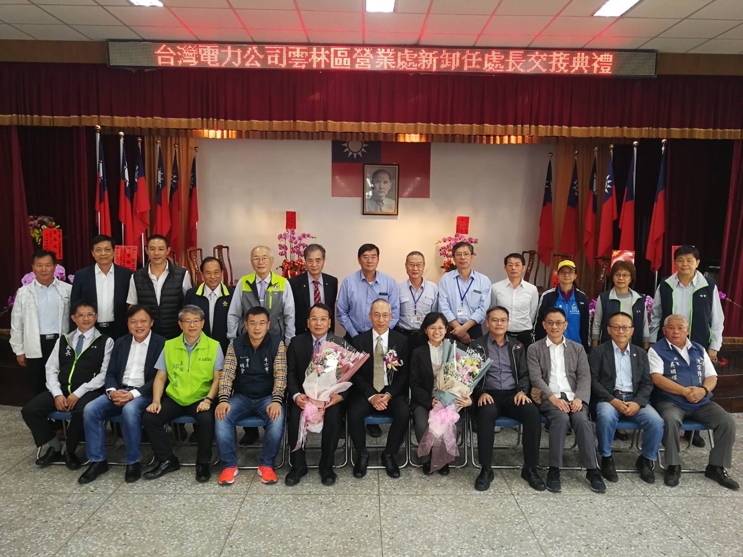 台灣電力公司雲林區營業處今(6)日舉行新、卸任處長交接典禮,儀式由台電公司配電處長楊顯輝擔任監交人,原任處長顏錦義調任台電台中區營業處處長,遺缺由原任職嘉義區營業處處長許一女接任,行政院雲嘉南區聯合服務中心執行長許根尉受邀到場觀禮,典禮場面簡單隆重。