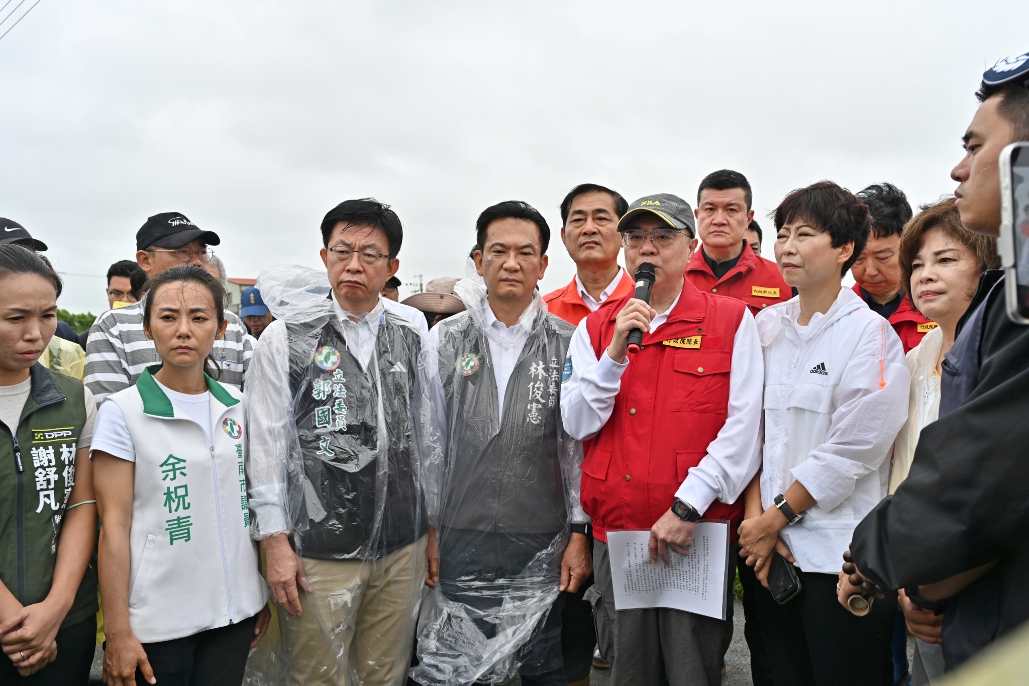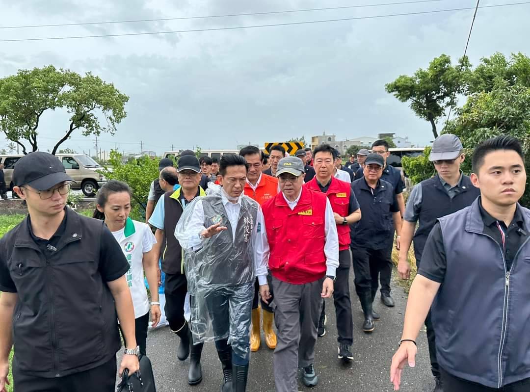 關心凱米颱風對中南部災損情形,行政院長卓榮泰偕同行政院陳世凱發言人、行政院雲嘉南區聯合服務中心劉米山執行長、內政部馬士元次長、經濟部何晉滄次長、林俊憲立委、陳亭妃立委、賴惠員立委、臺南市黃偉哲市長於26日上午前往臺南市分別視察高粱籽實農作災損及八掌溪菁寮段溢堤搶修復原工程情形。