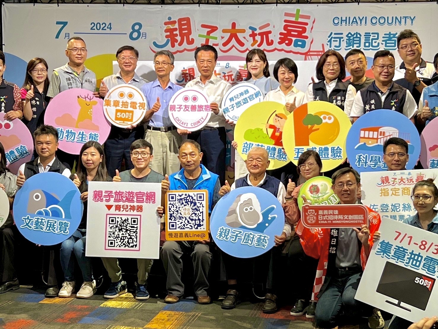 今年暑假針對親子旅遊特別加碼舉辦「集章抽50吋電視」集客活動,將在9月初抽出3台50吋的大電視,想要獲得抽獎資格很簡單,第1個最輕鬆的方式就是加入「慢遊嘉義」LINE 好友@chiayitravel,就能獲得1張摸彩兌換券,拿到指定兌換點就能換抽獎券!第2個方式就是拿著集章卡到指定點遊玩、蓋章,集滿3點就能換抽獎券,集越多換越多,中獎機率就越高!集章卡可以到指定點領取,又或者自行到全台7-11的ibon 機台列印也可以,活動辦法公布於「 慢遊嘉義 」臉書粉絲專頁以及嘉義縣文化觀光局親子旅遊官網查詢。