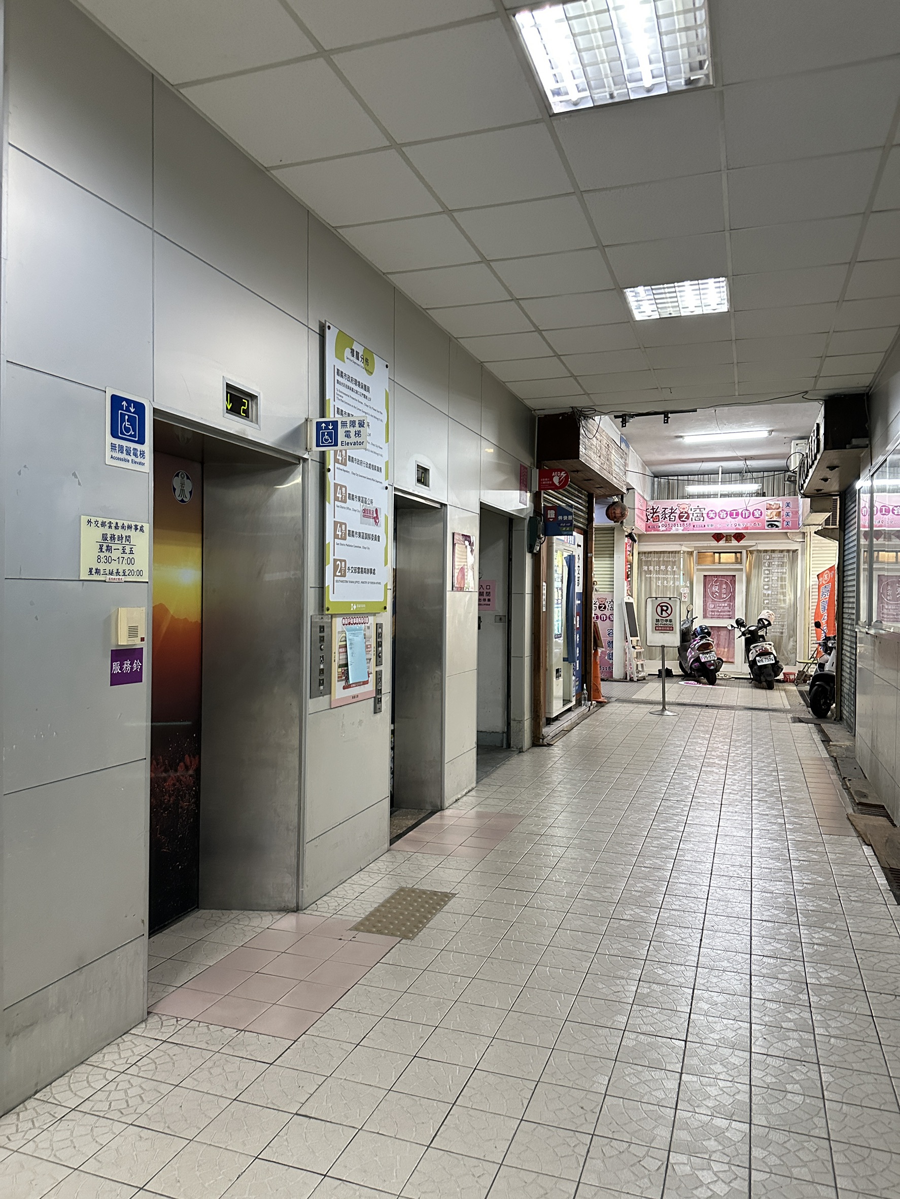 嘉義市吳鳳北路人行道改善工程,近期將進行本大樓前人行道施工作業,請要洽公的民眾,若吳鳳北路封閉無法進入時,請從中正路側邊出入,並搭乘此區電梯。
