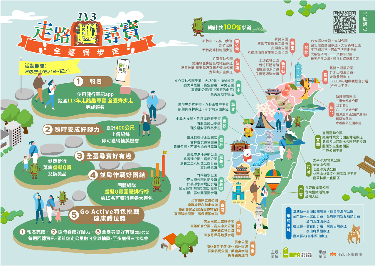 國民健康署於今(113)年6月3日起至11月17日止,推出「走路趣尋寶 全臺齊步走」全民健走線上競賽,已於8月辦理「父親節尋寶大挑戰」健走軌跡紀錄加碼活動,獲得熱烈迴響,沒有抽到獎品的民眾不用灰心,中秋佳節期間,再次加碼推出了「中秋團圓大挑戰」,鼓勵民眾逐步養成規律身體活動的習慣只要每週累積150分鐘可以講話但無法唱歌,呼吸及心跳比平常快一些,也會流一些汗的中度身體活動,就可以提升肌肉及心肺功能。趕快拿出手機參加「中秋團圓大挑戰」,透過健走描繪象徵「月圓人團圓」的軌跡紀錄,參加步驟如下: